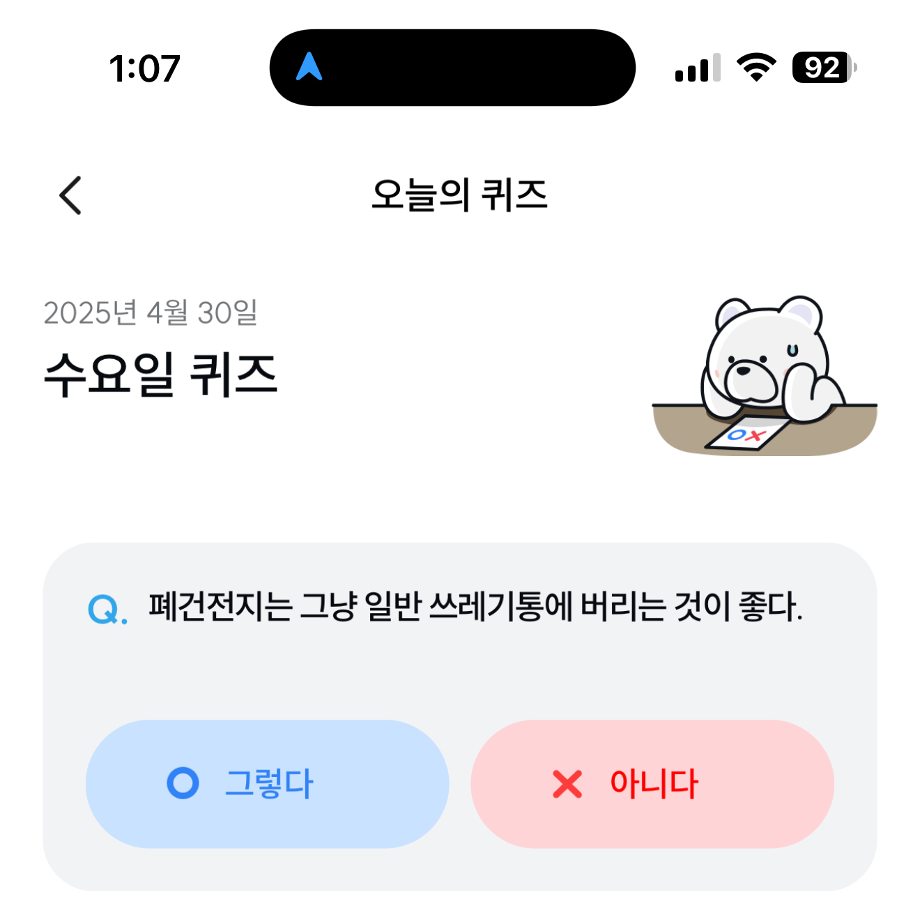 기후행동 기회소득 오늘의 퀴즈 정답은 아니다 입니다