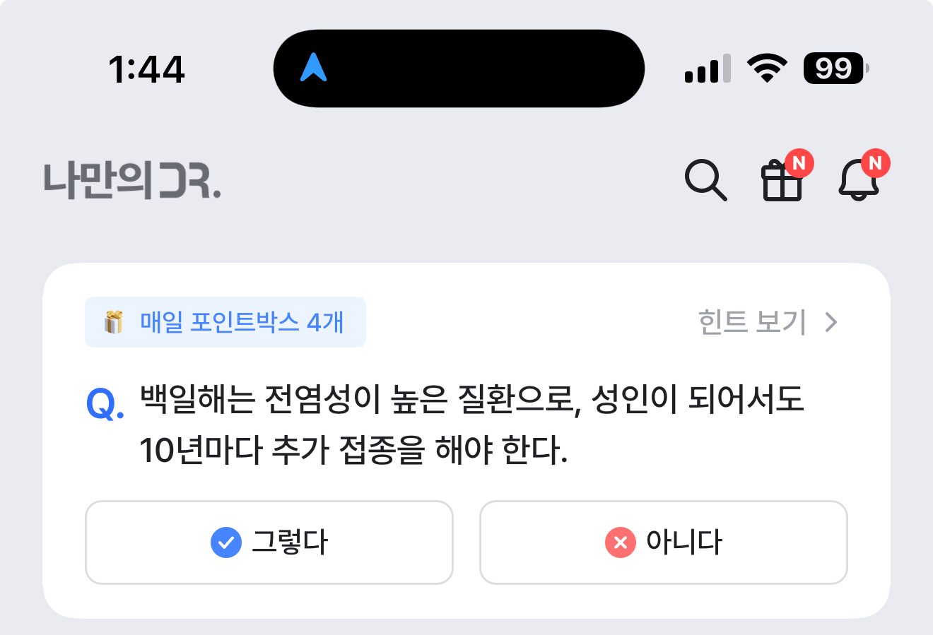 나만의 닥터 퀴즈 4월 30일 정답(백일해는 전염성이 높은 질환으로, 성인이 되어서도 10년마다 추가 접종을 해야 한다)