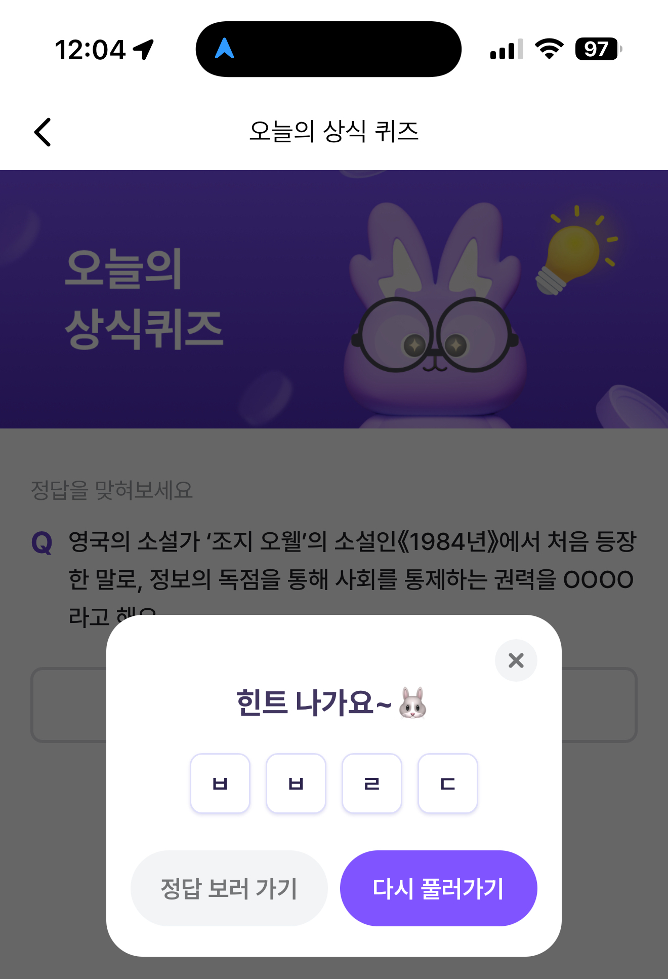 비트버니 오늘의 퀴즈 초성 힌트는 ㅂㅂㄹㄷ 입니다