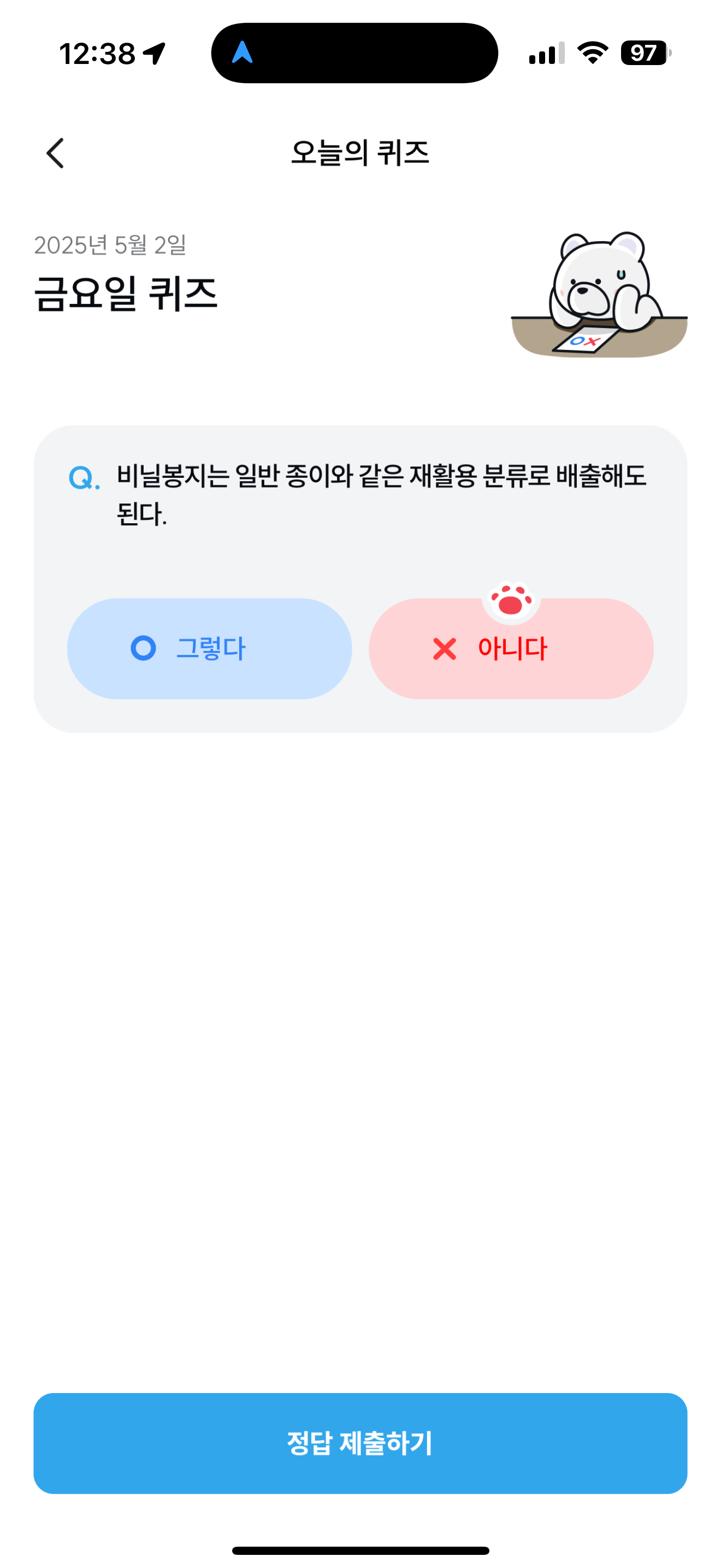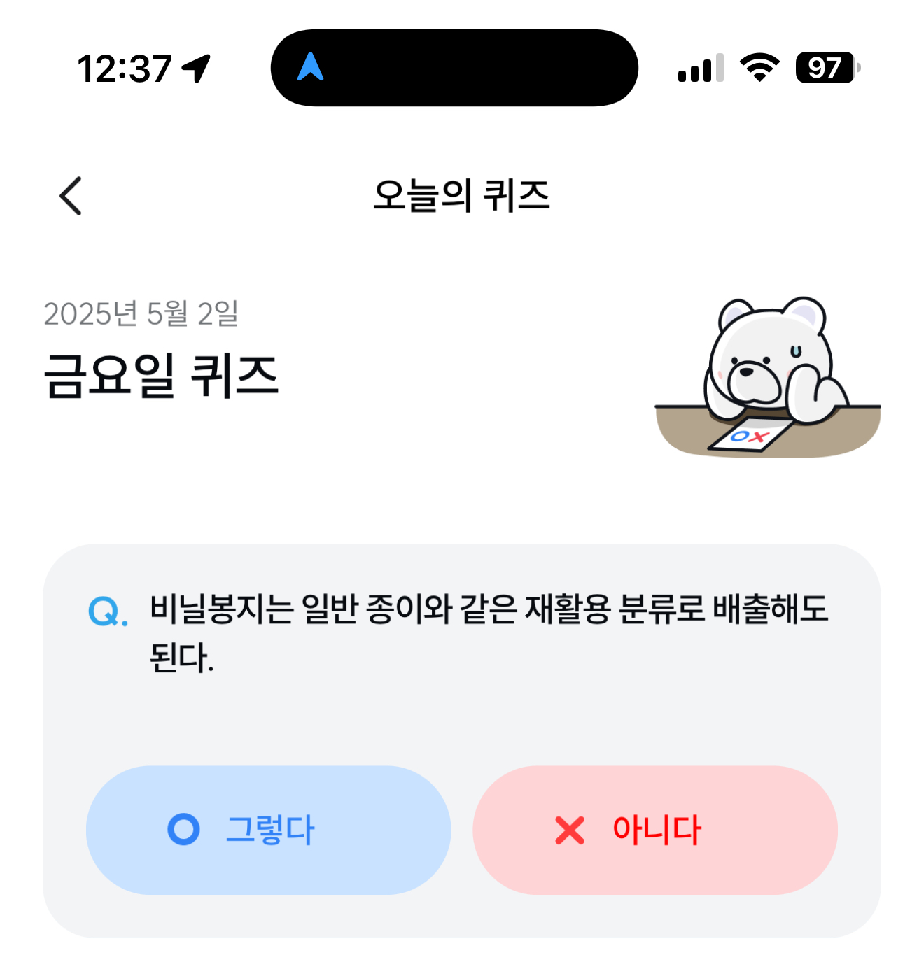 기후행동 기회소득 오늘의 퀴즈 정답은 아니다 입니다