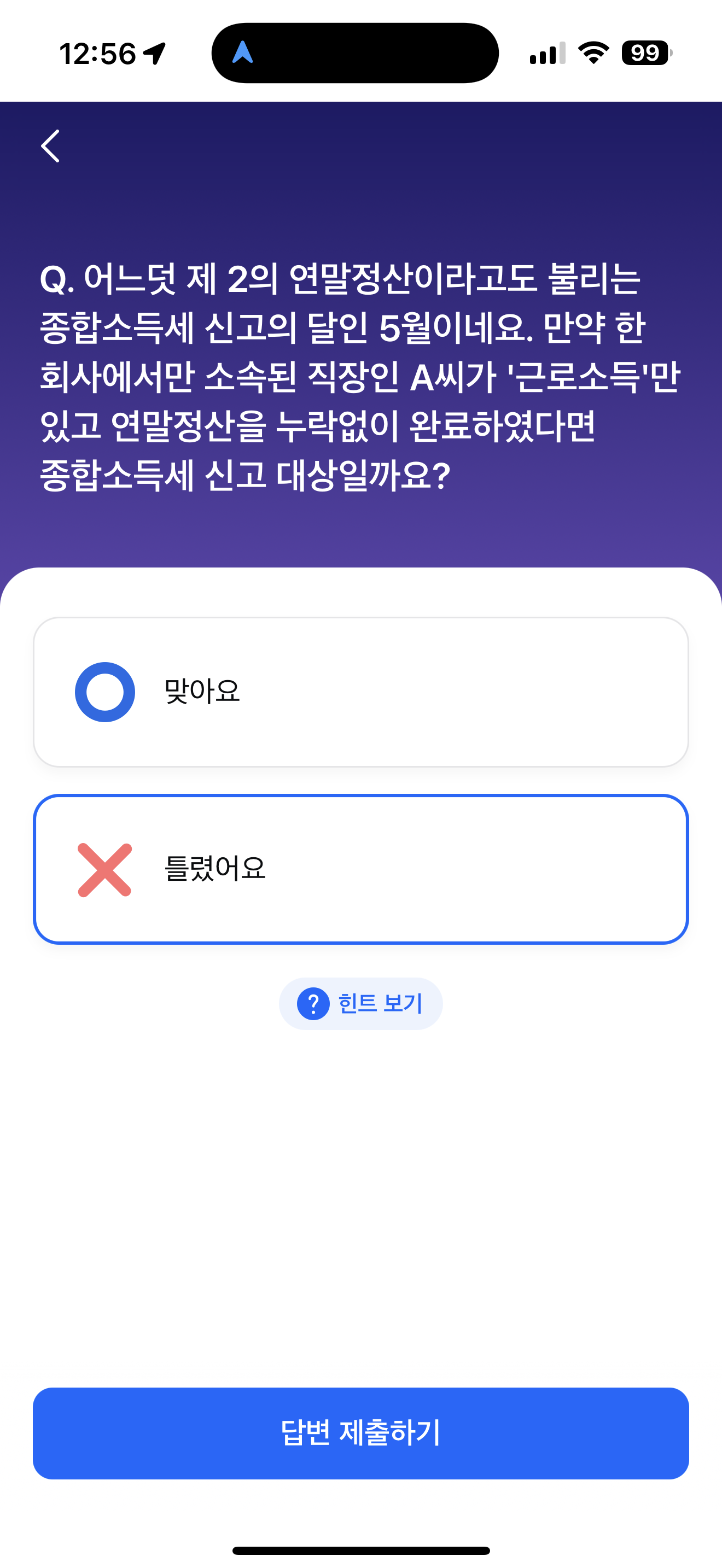 어느덧 제 2의 연말정산이라고도 불리는 종합소득세 신고의 달인 5월이네요. 만약 한 회사에서만 소속된 직장인 A씨가 '근로소득'만 있고 연말정산을 누락없이 완료하였다면 종합소득세 신고 대상일까요? 맞아요. 틀렸어요 선택하면 되는데요.