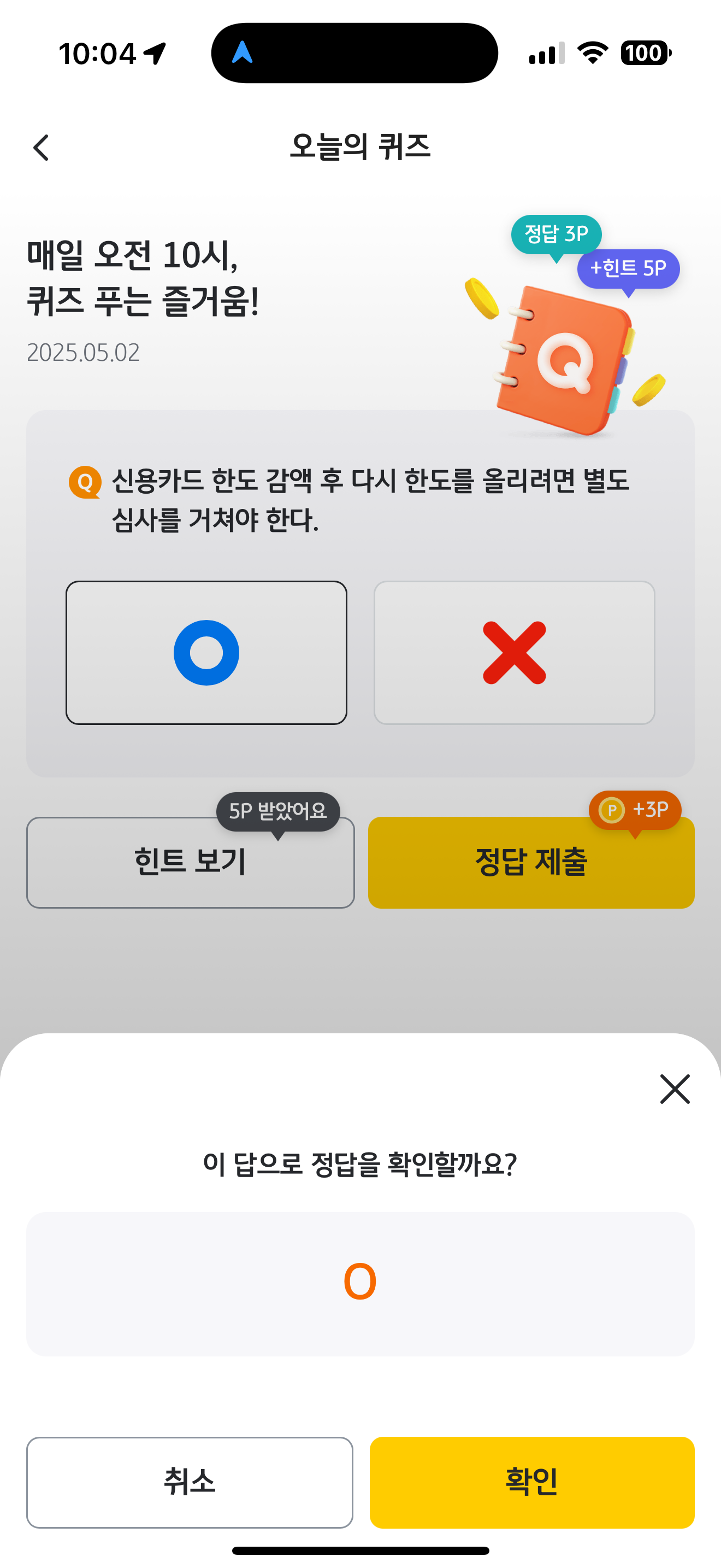 KB Pay 오늘의 퀴즈 정답은 O 입니다