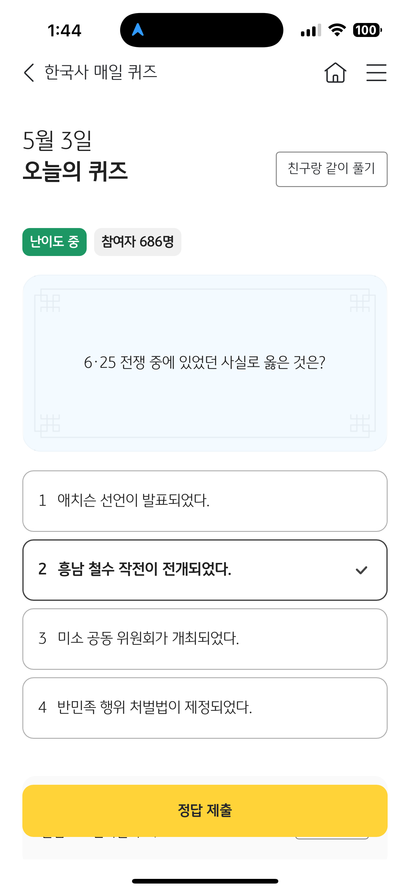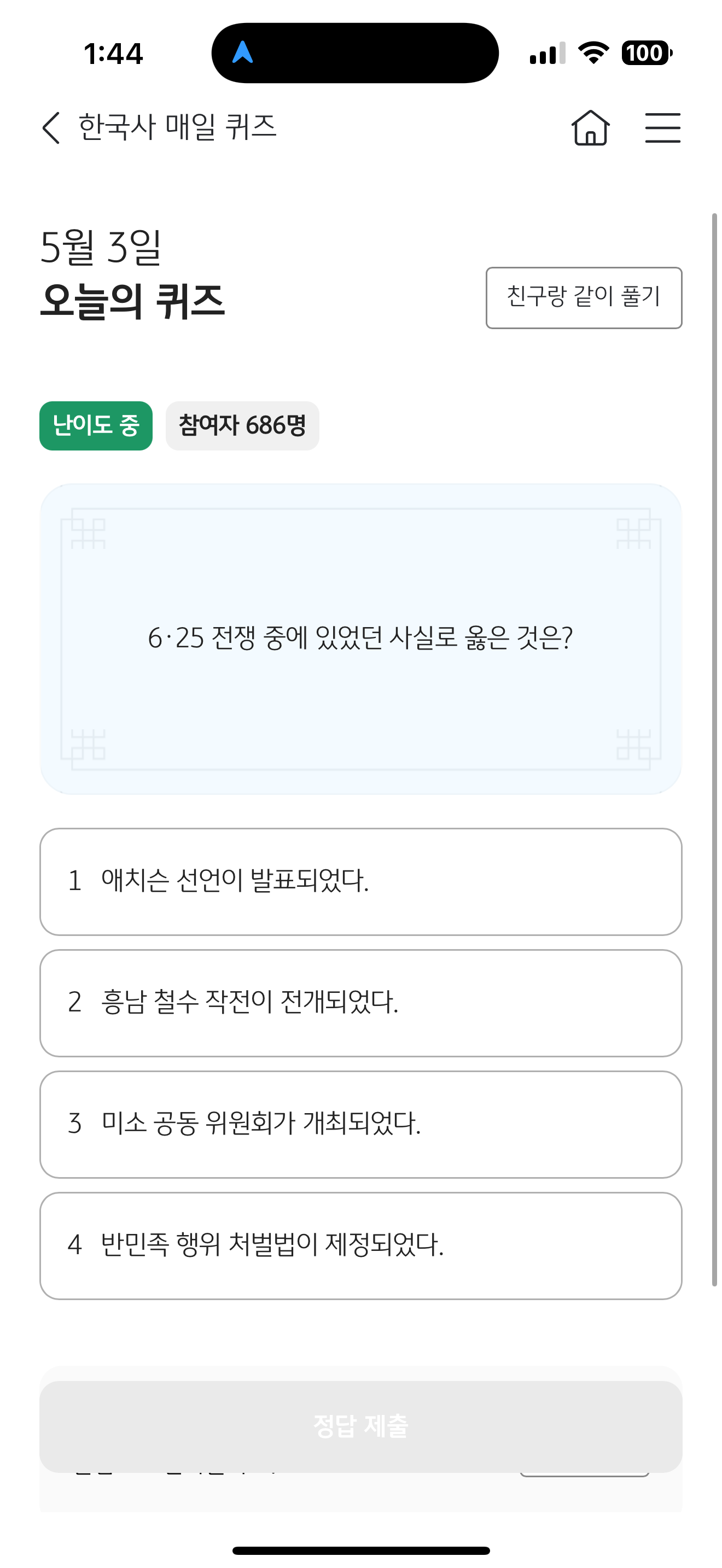 KB스타뱅킹 한국사 매일 퀴즈 5월 3일 문제입니다