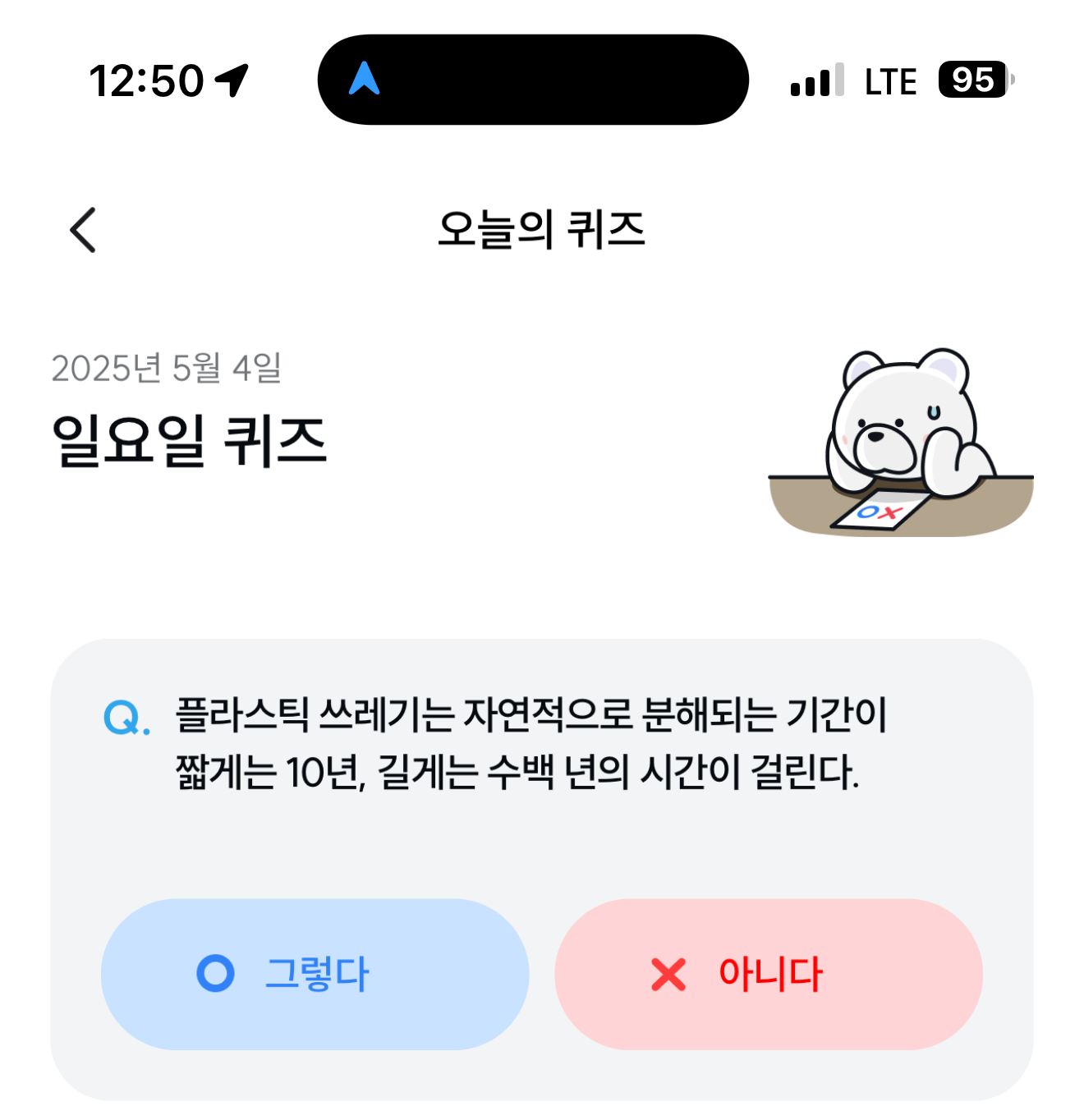 기후행동 기회소득 오늘의 퀴즈 정답은 그렇다 입니다. 10년이 짧은거 같아서 아닌거 같지만 주의하세요
