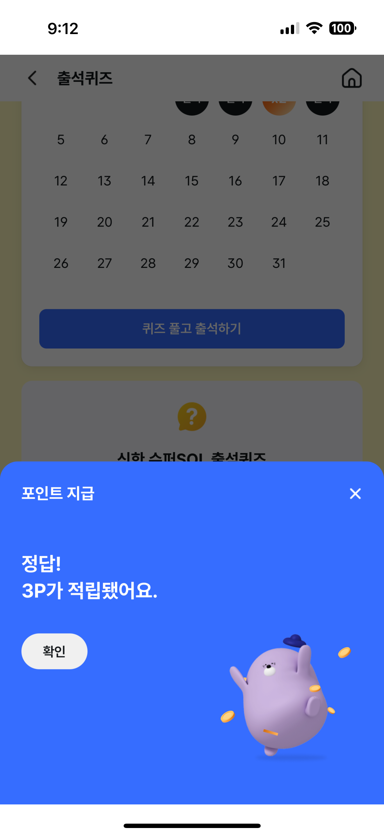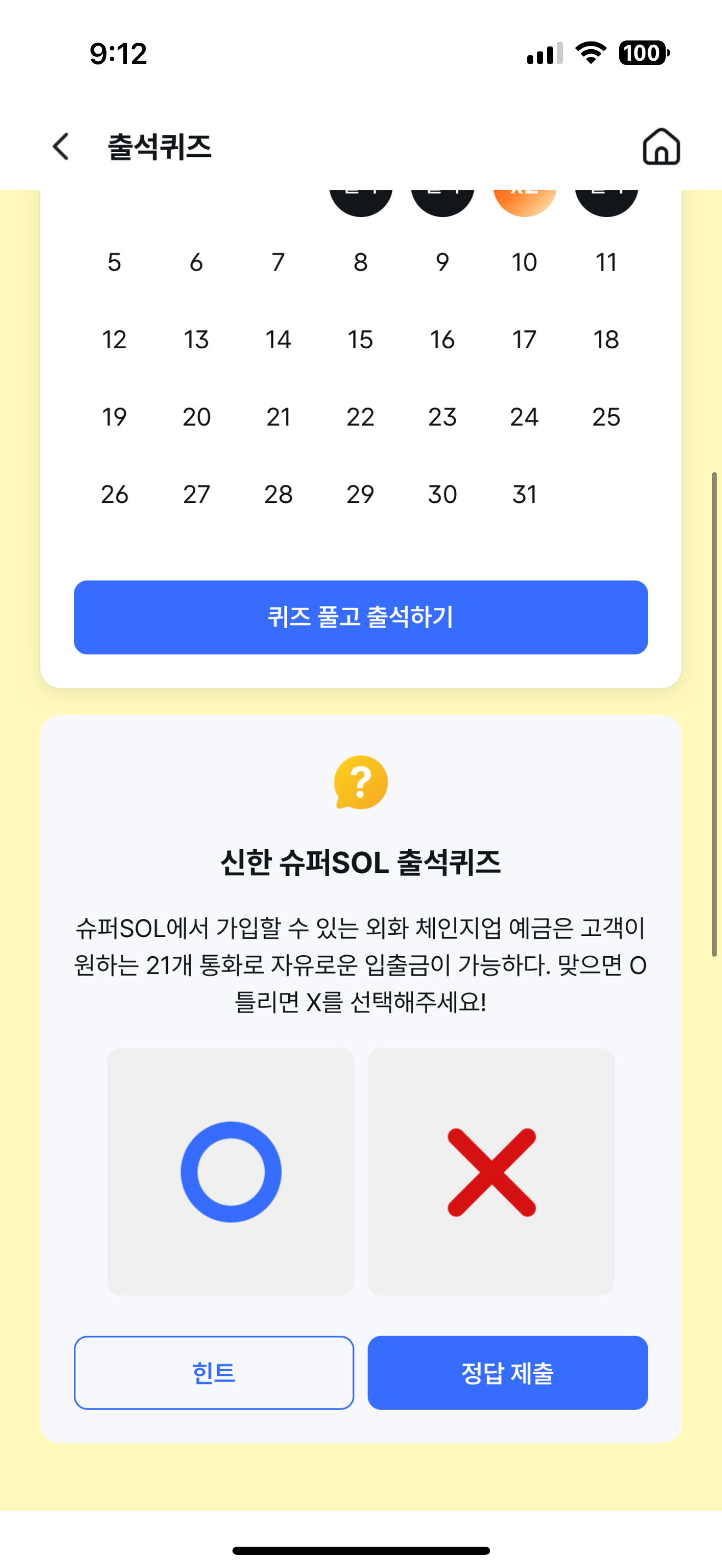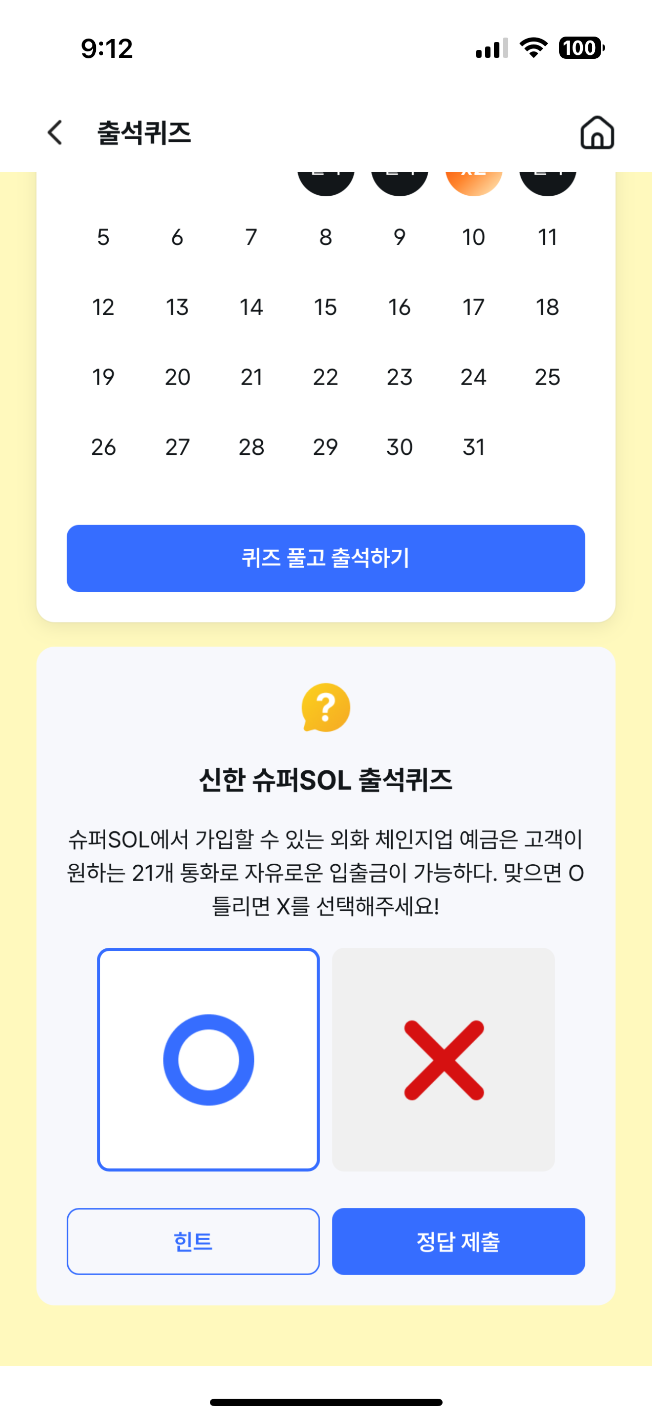 신한 슈퍼SOL 출석퀴즈 정답은 O 입니다
