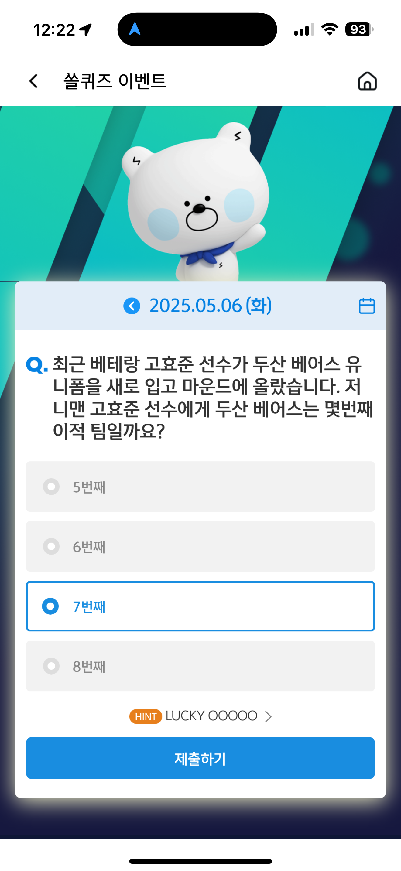 신한 슈퍼SOL 야구/상식 쏠퀴즈 5월 6일 정답(최근 베테랑 고효준 선수가 두산 베어스 유니폼을 새로 입고 마운드에 올랐습니다. 저니맨 고효준 선수에게 두산 베어스는 몇번째 이적 팀일까요?)