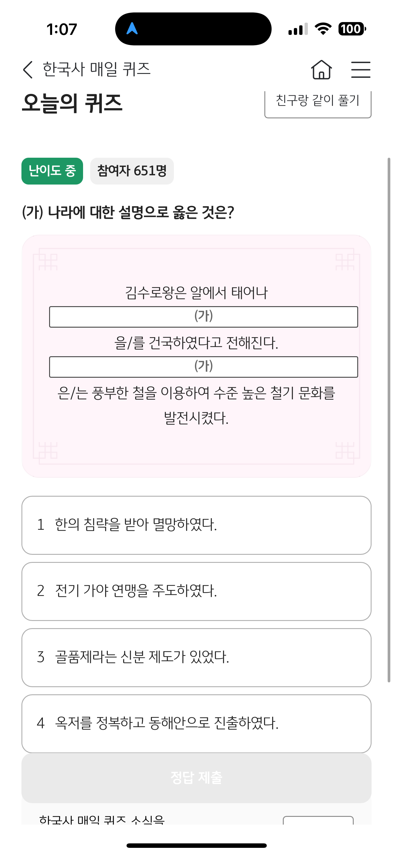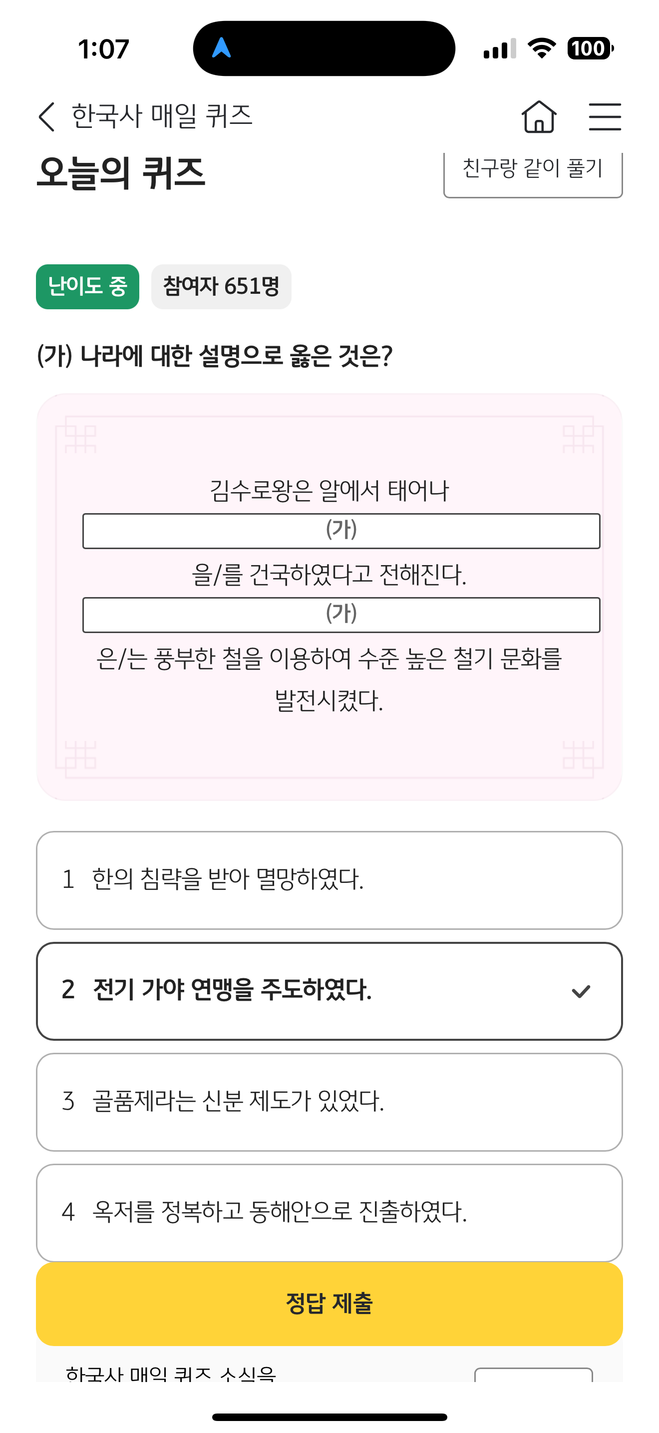 KB스타뱅킹 한국사 매일 퀴즈 정답은 전기 가야 연맹을 주도하였다 입니다