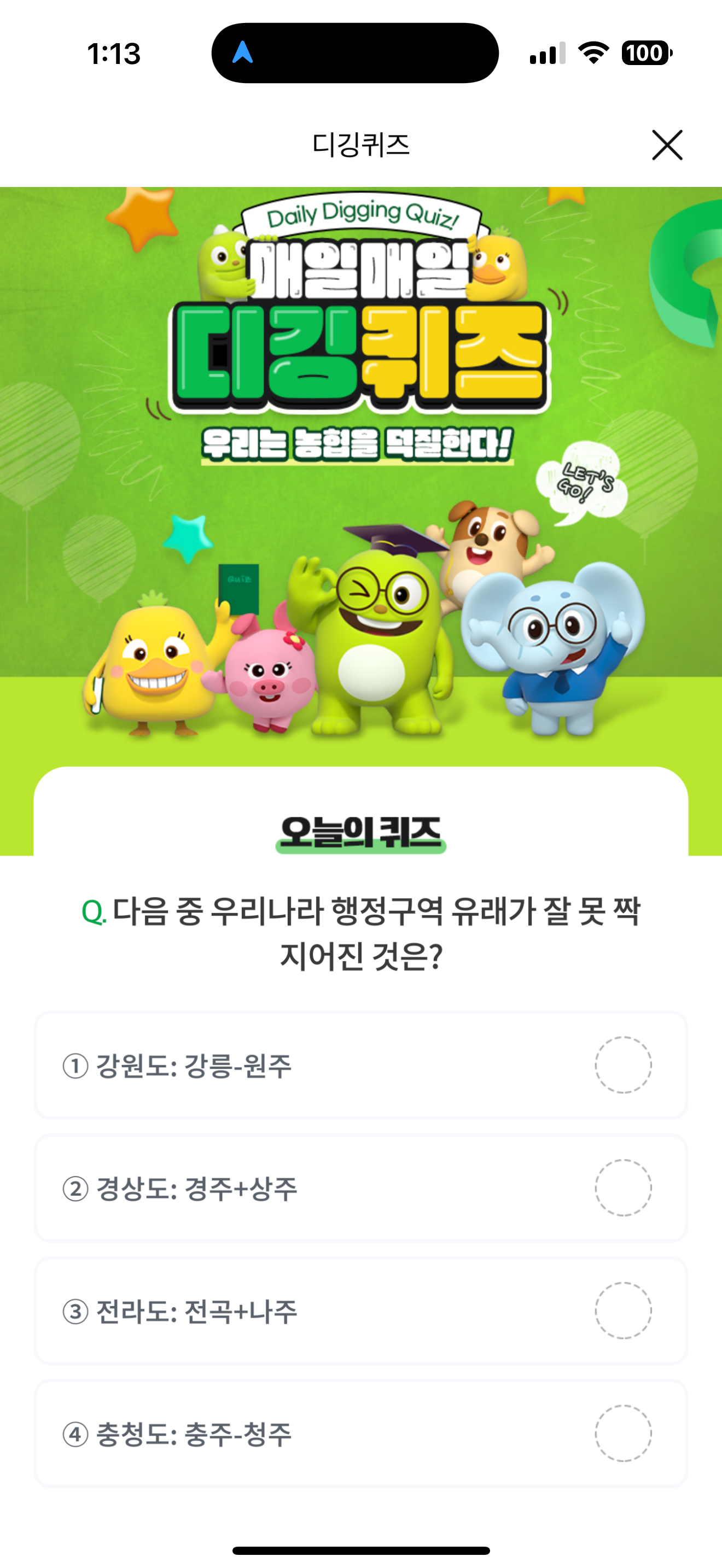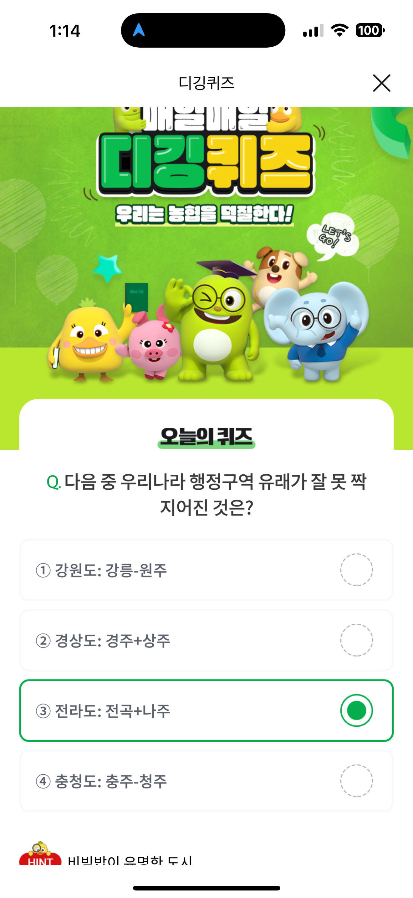 NH올원뱅크 디깅퀴즈 정답은 전라도: 전곡+나주 입니다