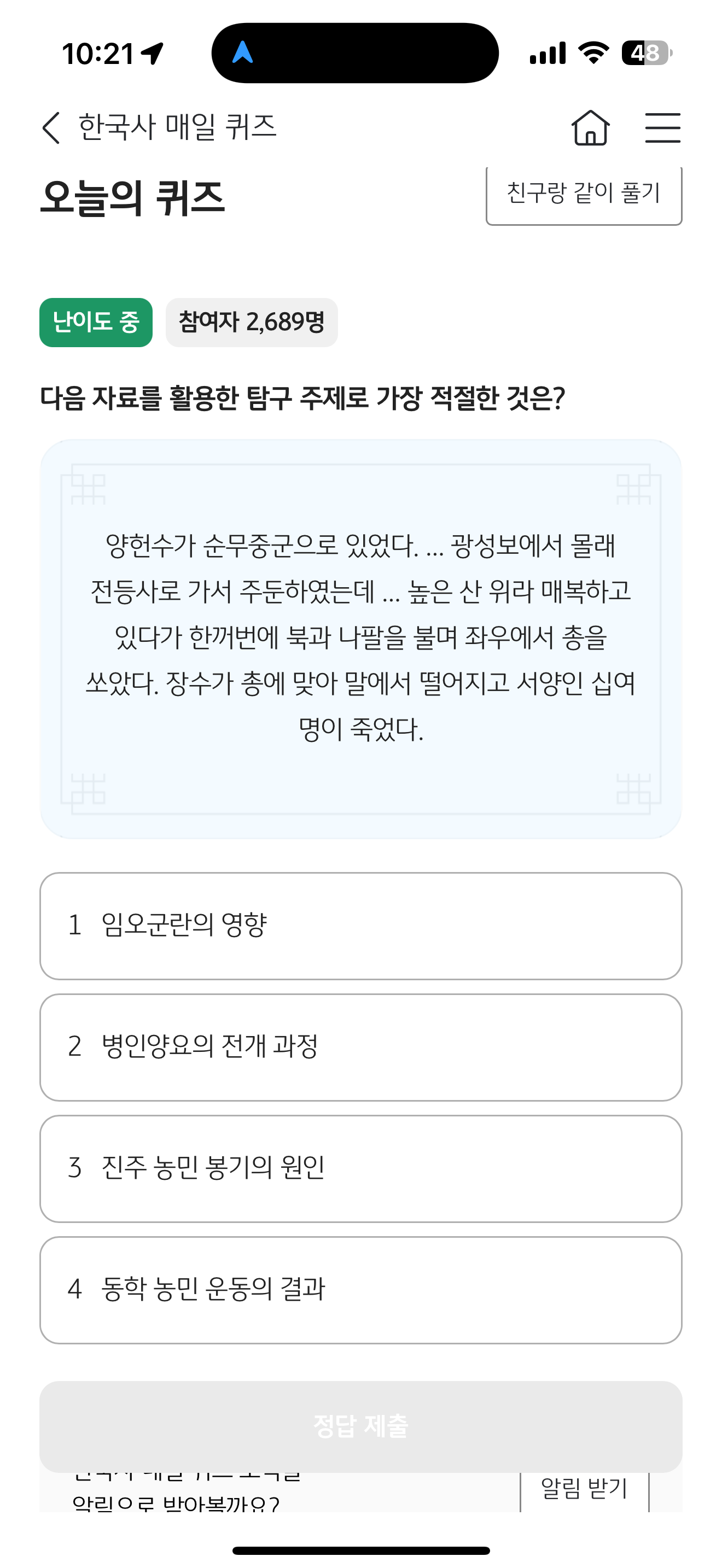 KB스타뱅킹 한국사 매일 퀴즈 5월 9일 문제입니다