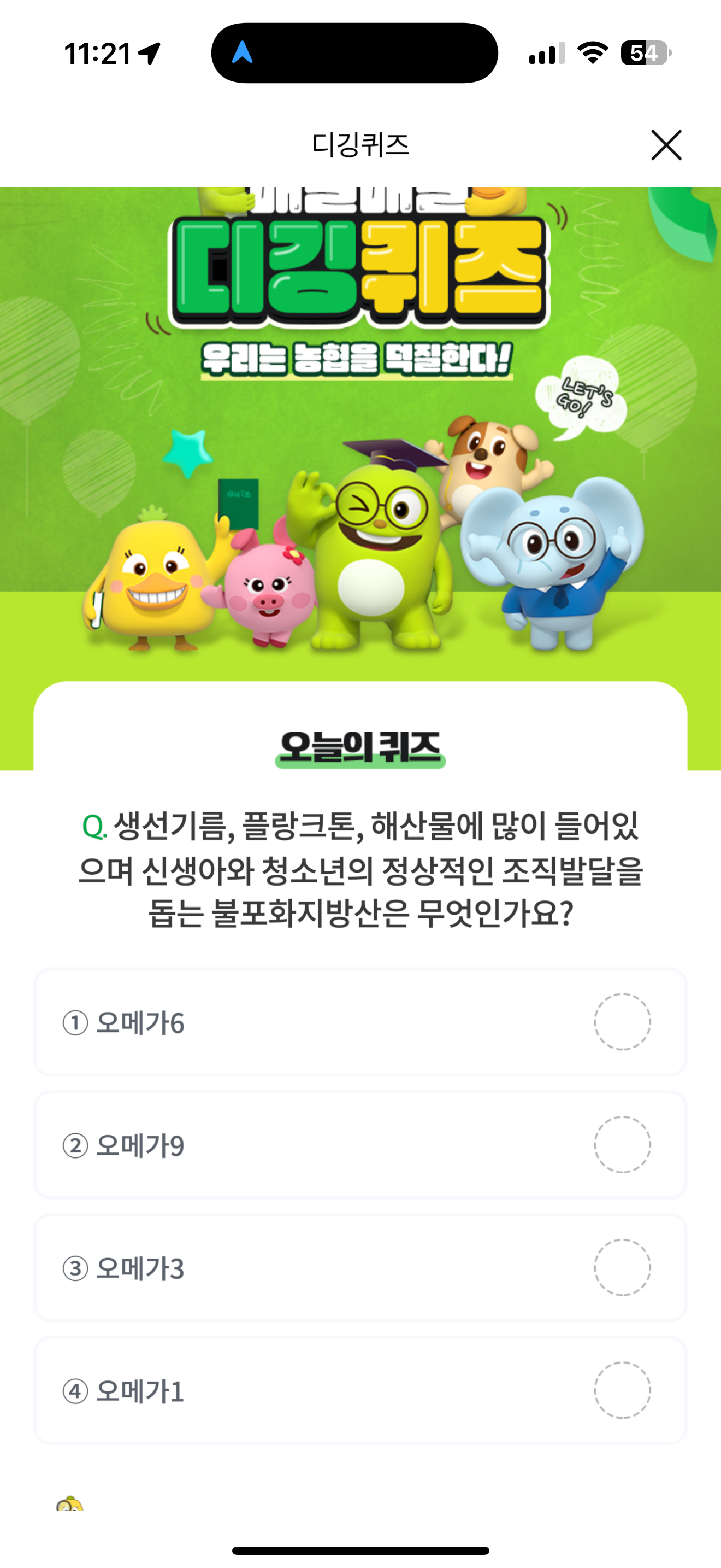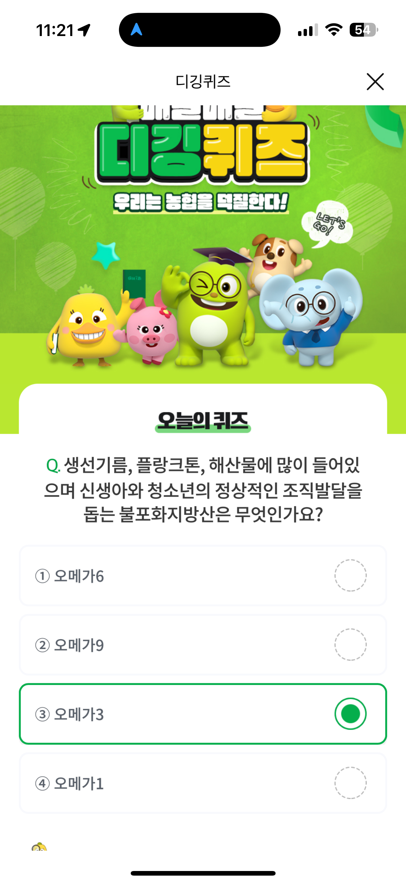 NH올원뱅크 디깅퀴즈 정답은 오메가3 입니다