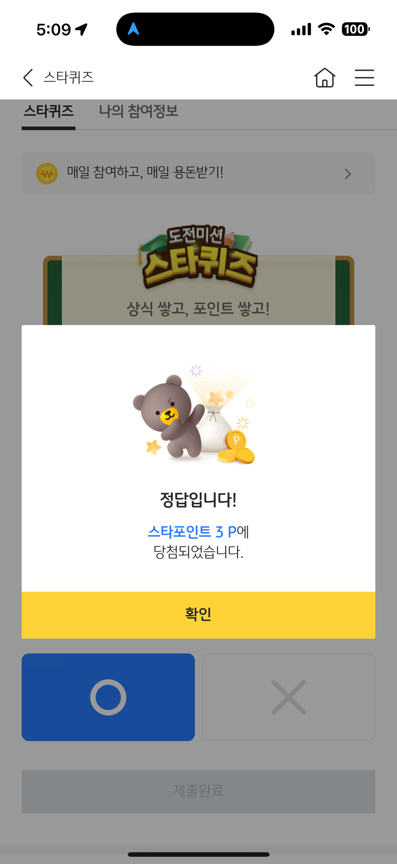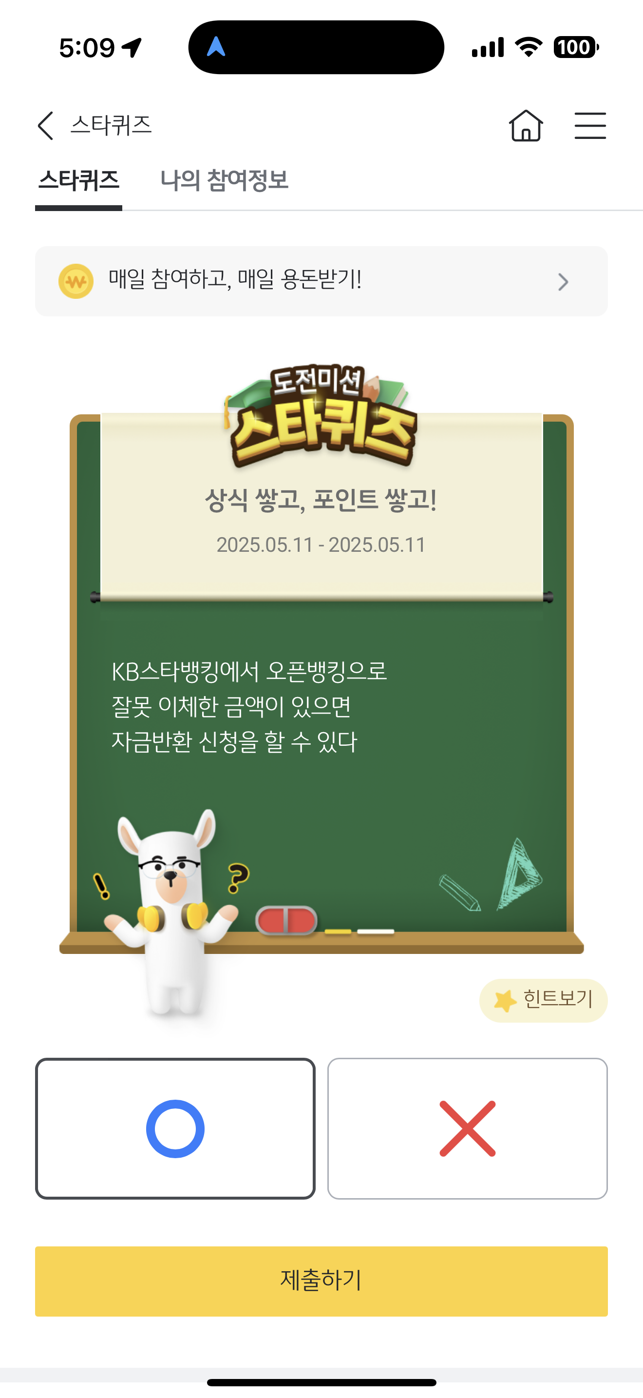 KB스타뱅킹 스타퀴즈 정답은 O 입니다
