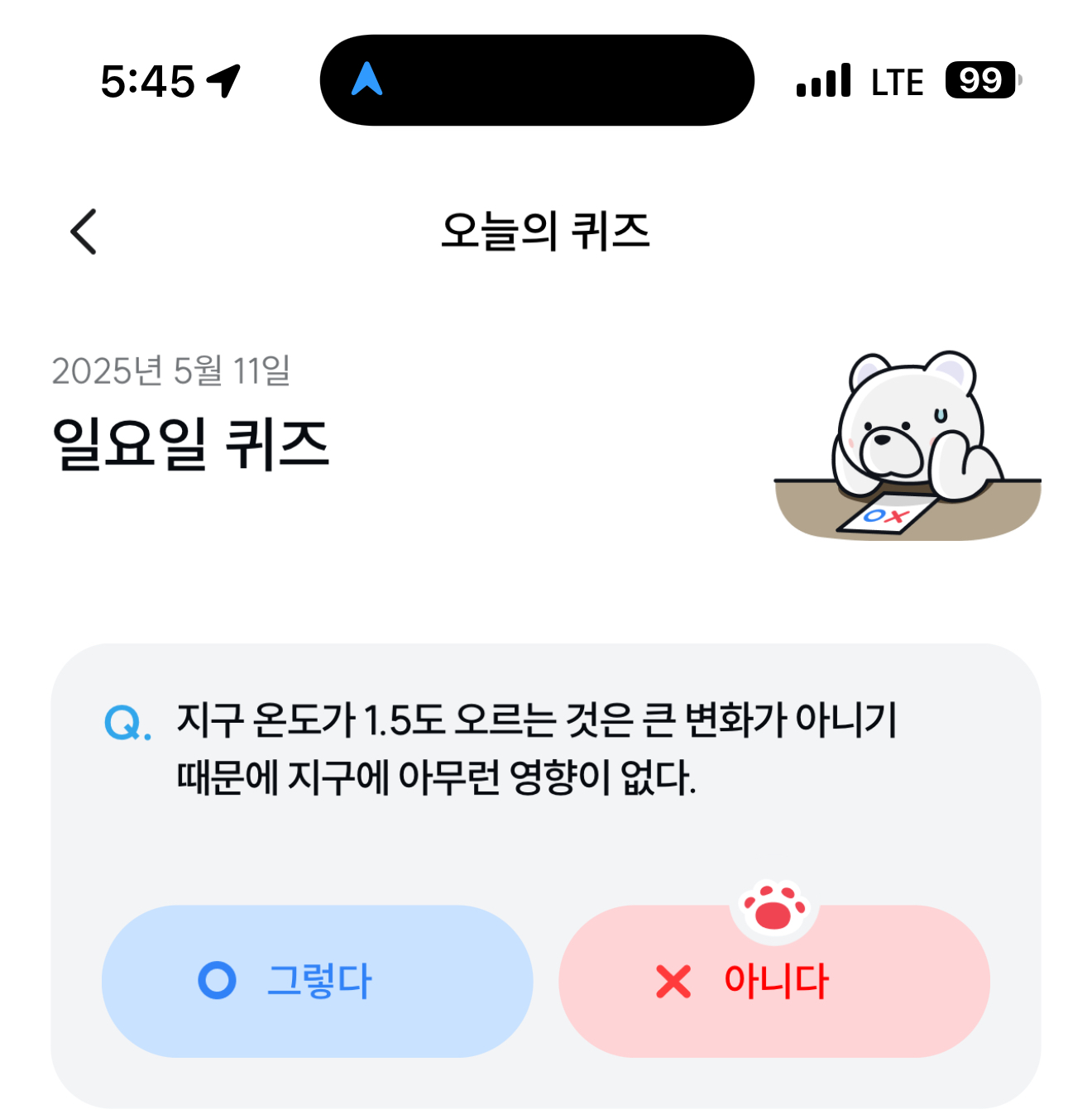 기후행동 기회소득 오늘의 퀴즈 정답은 아니다 입니다