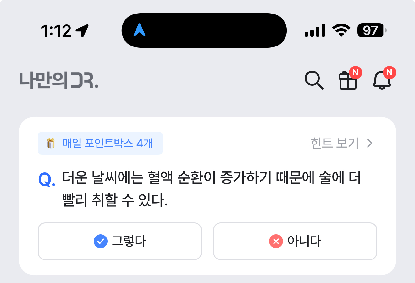 더운 날씨에는 혈액 순환이 증가하기 때문에 술에 더 빨리 취할 수 있다. 그렇다 아니다 선택하면 되는데요. 더운 날시에 술이 더 빨리 취하죠. 이게 혈액순환 때문일까요? 아니면 다른 요인때문에 그러는 걸까요? 참고해 보세요