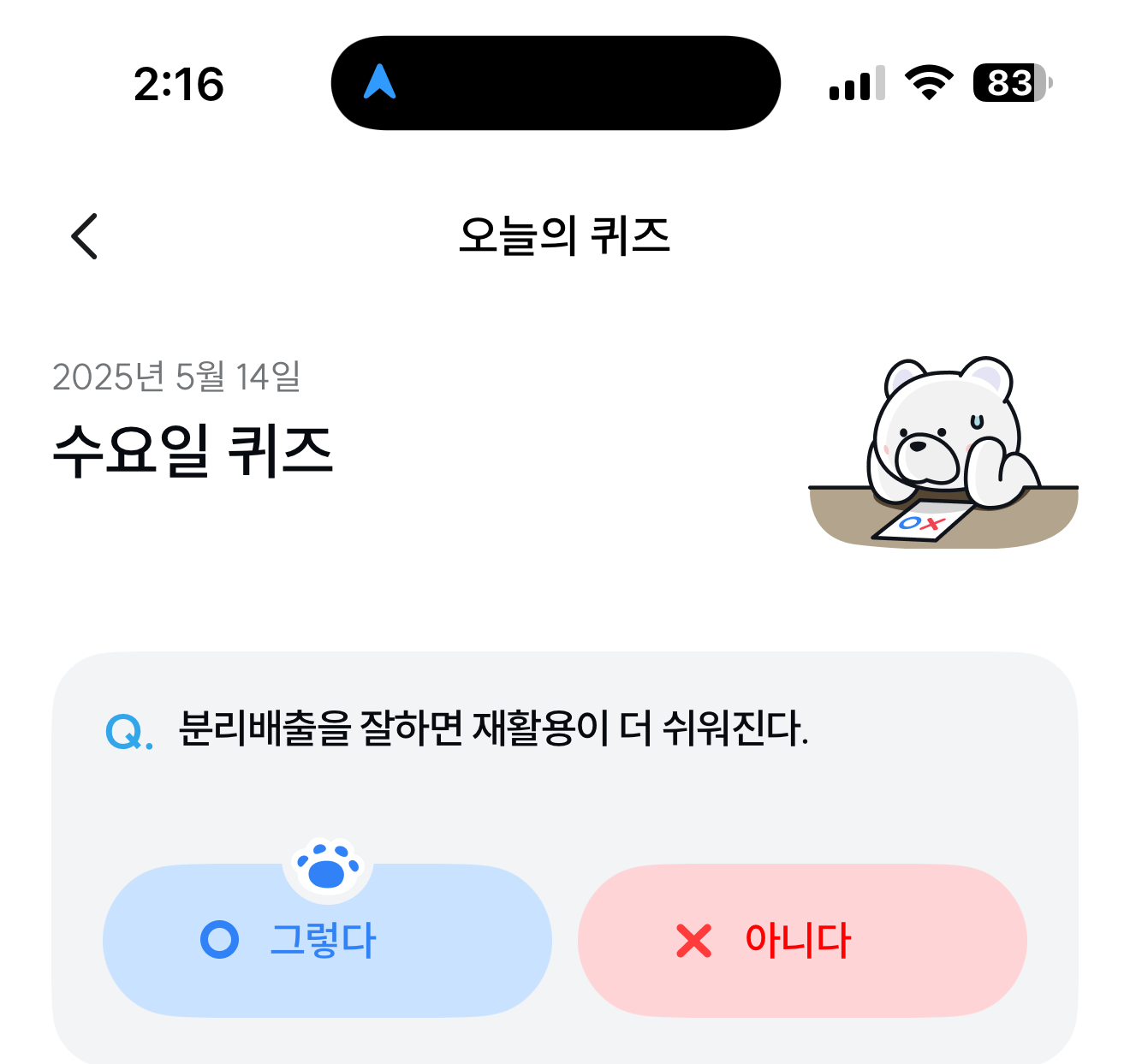 기후행동 기회소득 오늘의 퀴즈 정답은 그렇다 입니다