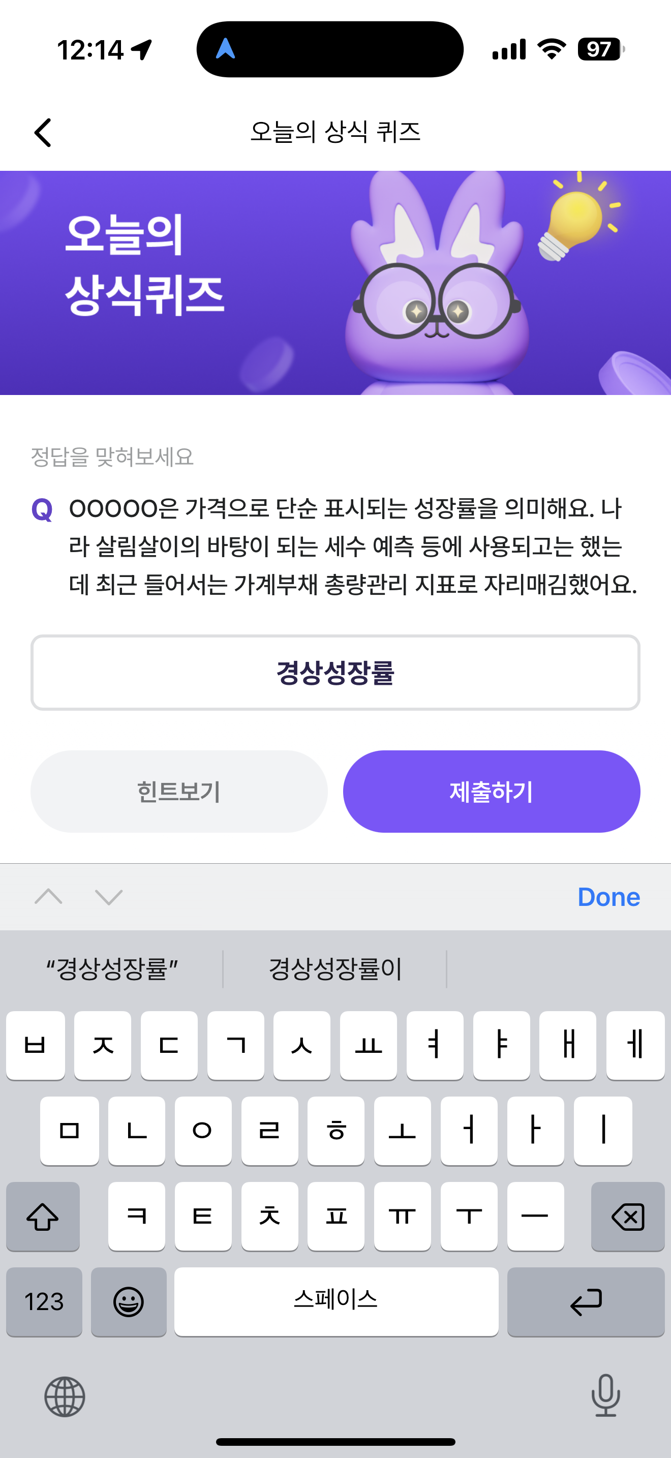 비트버니 오늘의 퀴즈 정답은 경상상장률 입니다