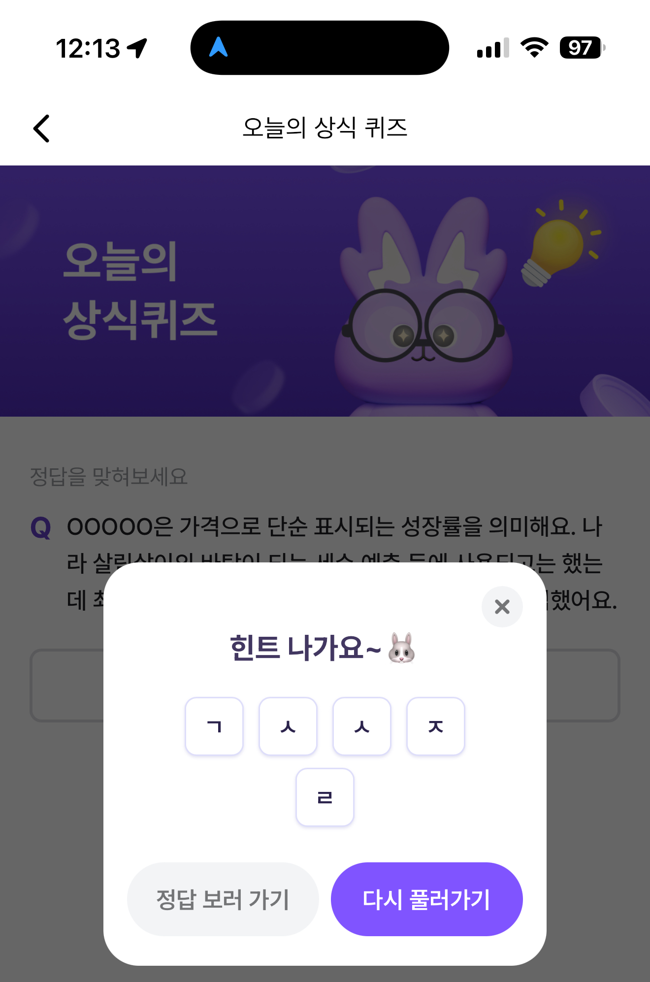 비트버니 오늘의 퀴즈 초성 힌트는 ㄱㅅㅅㅈㄹ 입니다