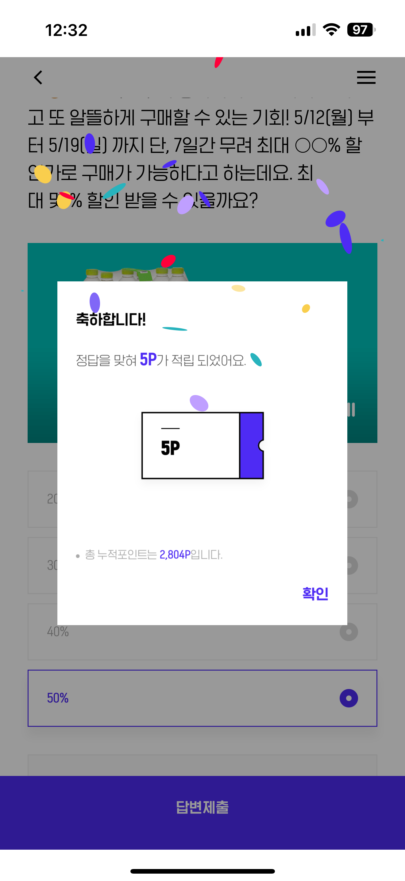 H포인트 퀴즈 정답은 50% 입니다