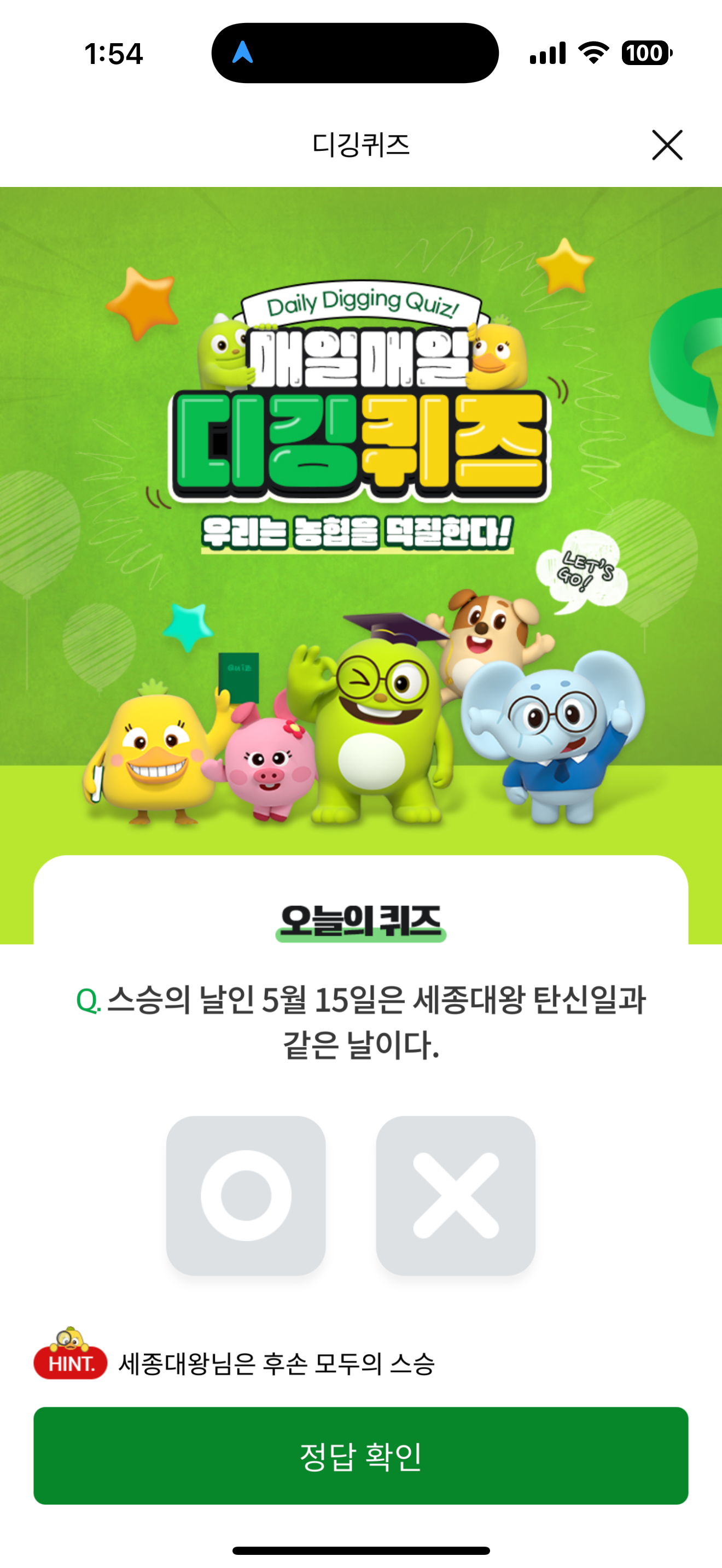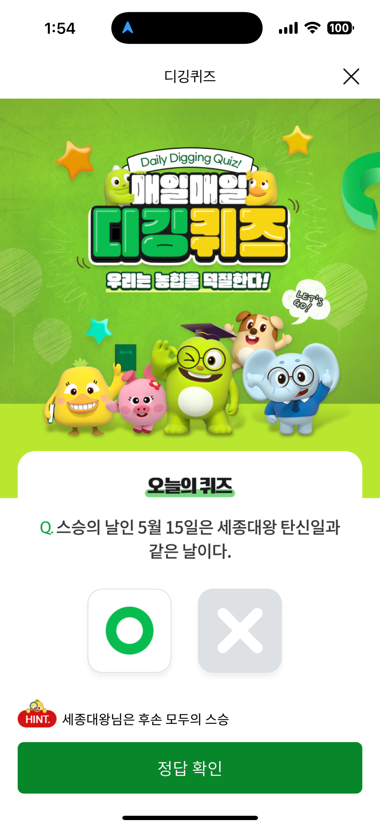 NH올원뱅크 디깅퀴즈 정답은 O 입니다
