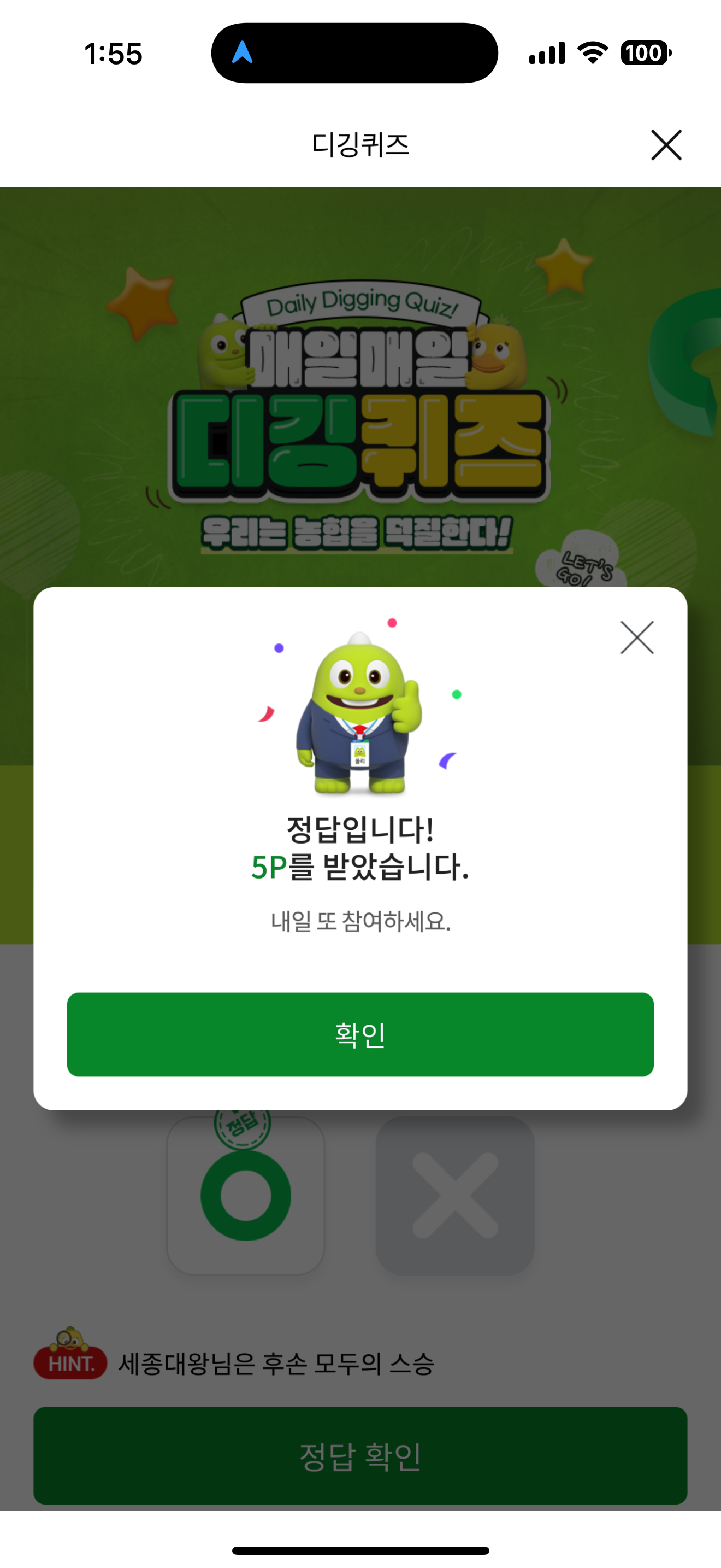 NH올원뱅크 디깅퀴즈 정답은 O 입니다