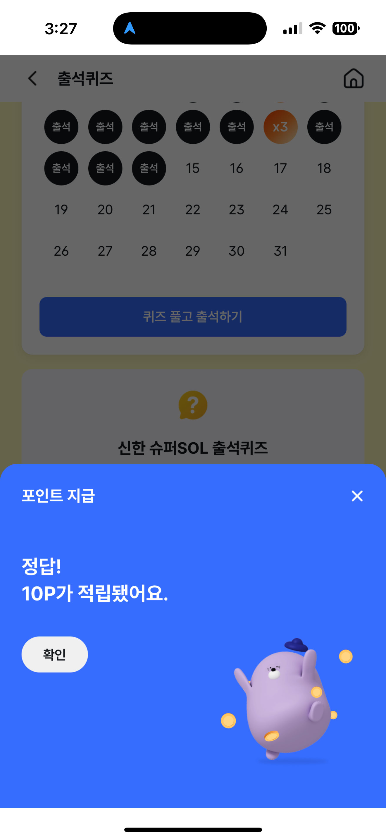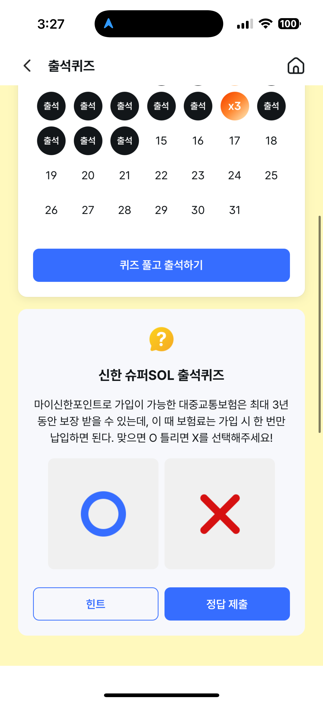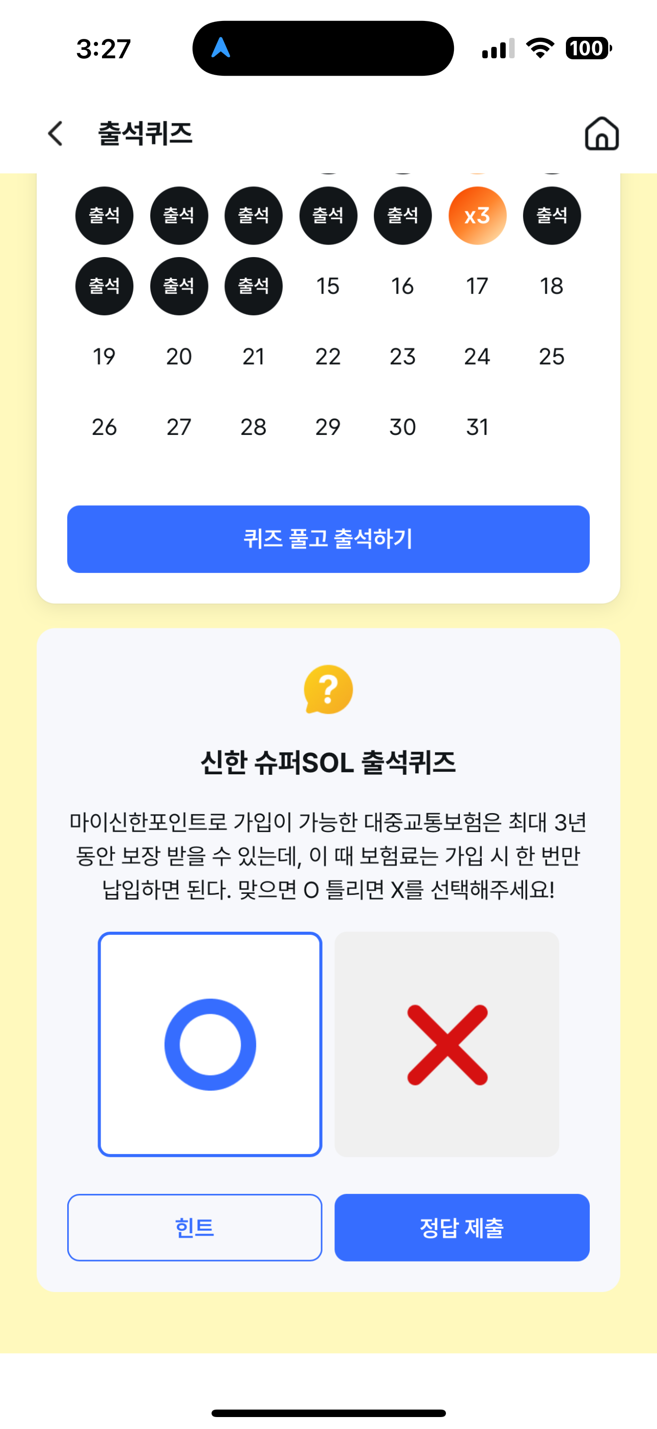 신한 슈퍼SOL 출석퀴즈 정답은 O 입니다