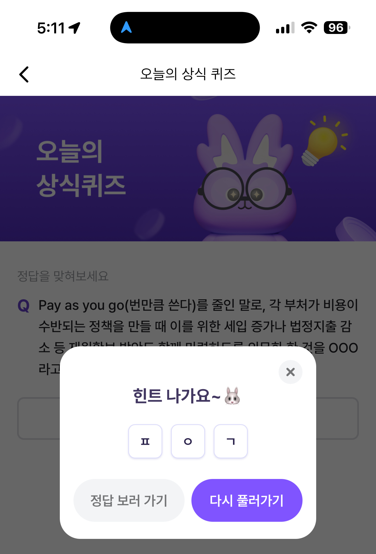 비트버니 오늘의 퀴즈 정답은 페이고 입니다