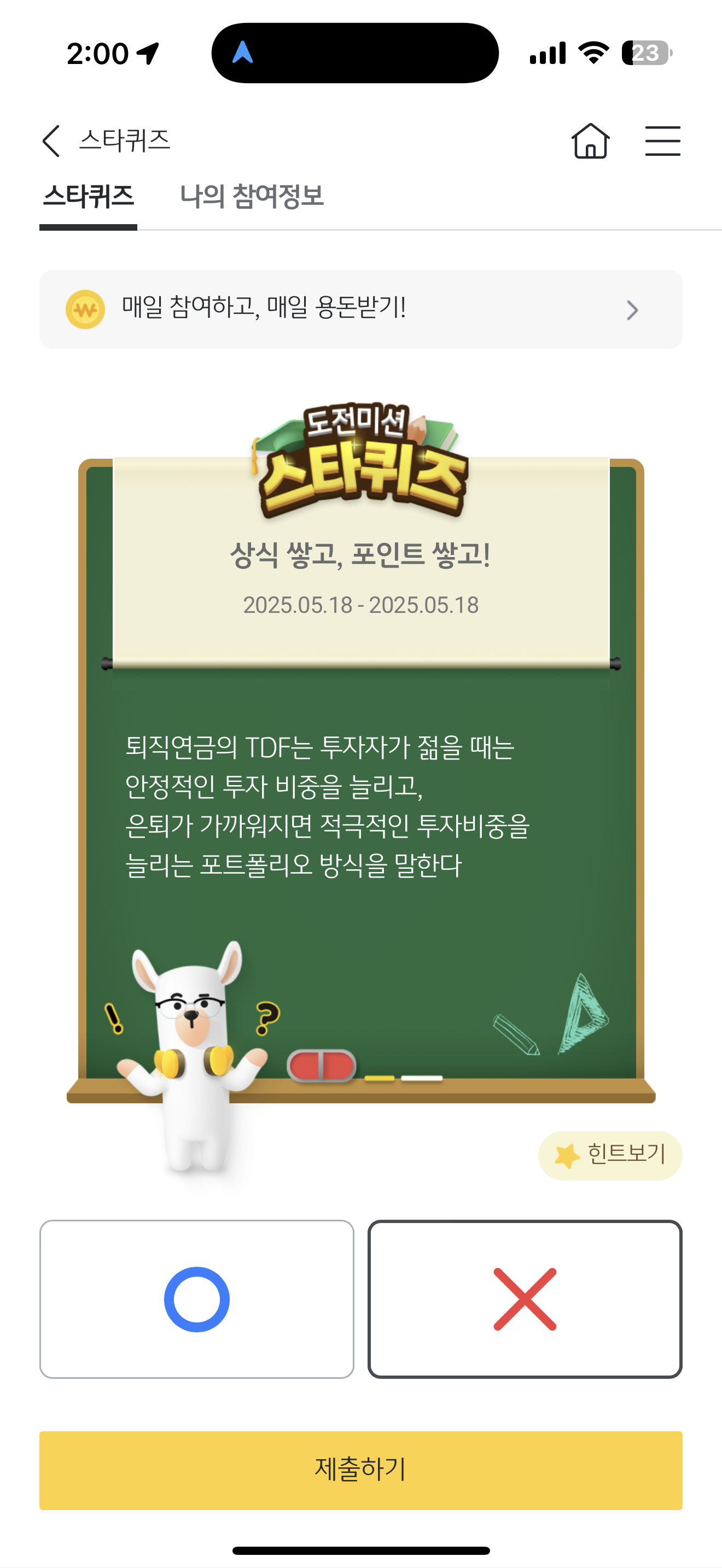 퇴직연금의 TDF는 투자자가 젊을 때는 안정적인 투자 비중을 늘리고, 은퇴가 가까워지면 적극적인 투자비중을 늘리는 포트폴리오 방식을 말한다. O, X 퀴즈인데요. 노후를 위해 퇴직연금을 많이 활용하는데요. 과연 젊을때는 안정적인 투자 비중이고 나이를 먹으면 적극적인 투자를 할까요?