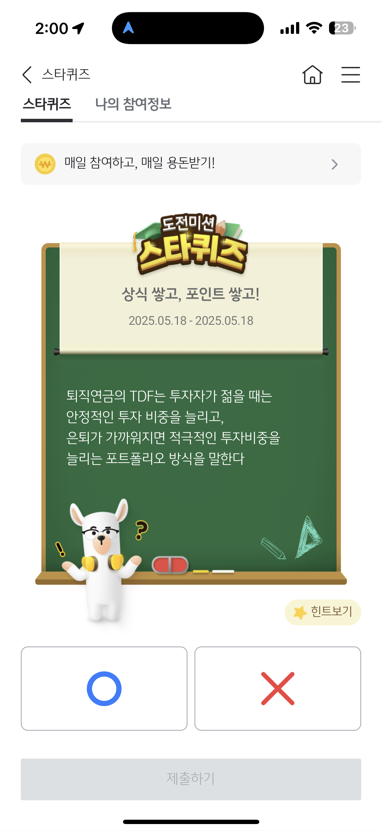 퇴직연금의 TDF는 투자자가 젊을 때는 안정적인 투자 비중을 늘리고, 은퇴가 가까워지면 적극적인 투자비중을 늘리는 포트폴리오 방식을 말한다. O, X 퀴즈인데요. 노후를 위해 퇴직연금을 많이 활용하는데요. 과연 젊을때는 안정적인 투자 비중이고 나이를 먹으면 적극적인 투자를 할까요?