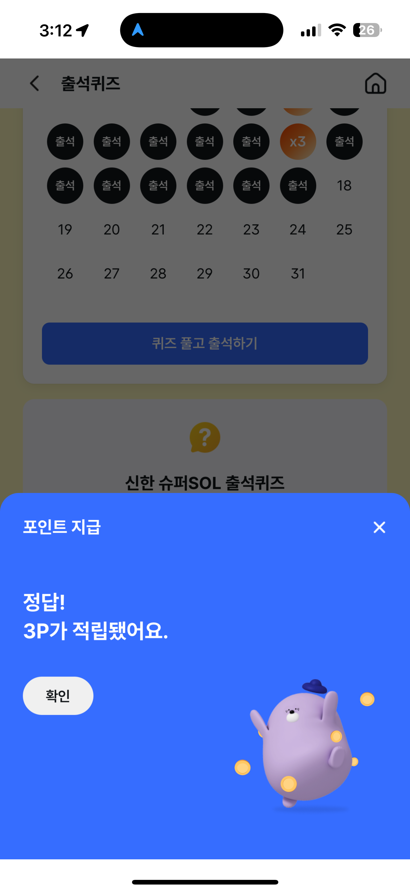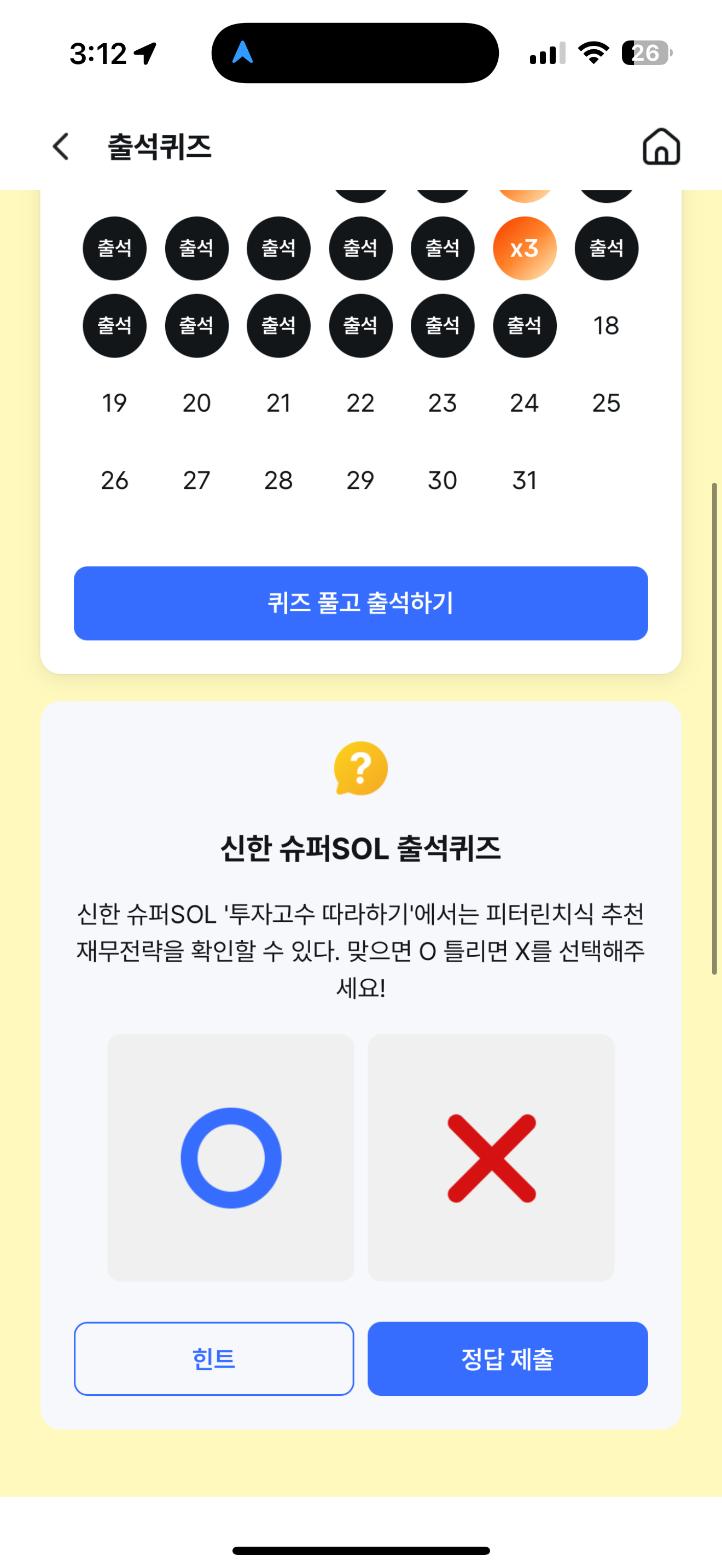 신한 슈퍼SOL 출석퀴즈 정답은 O 입니다
