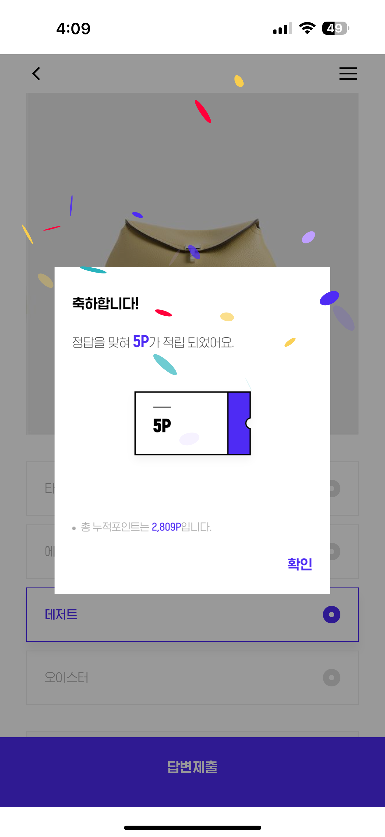 H포인트 퀴즈 정답은 데저트 입니다