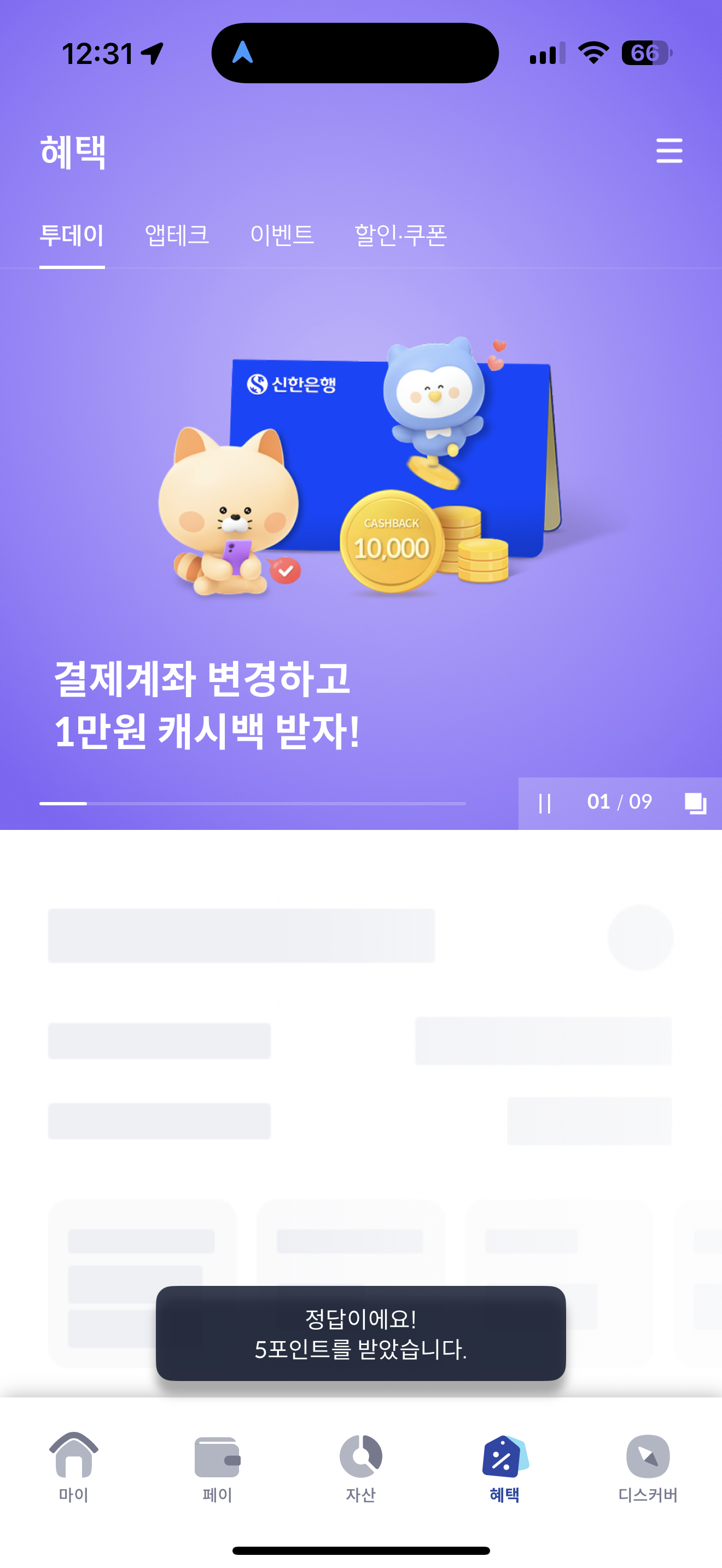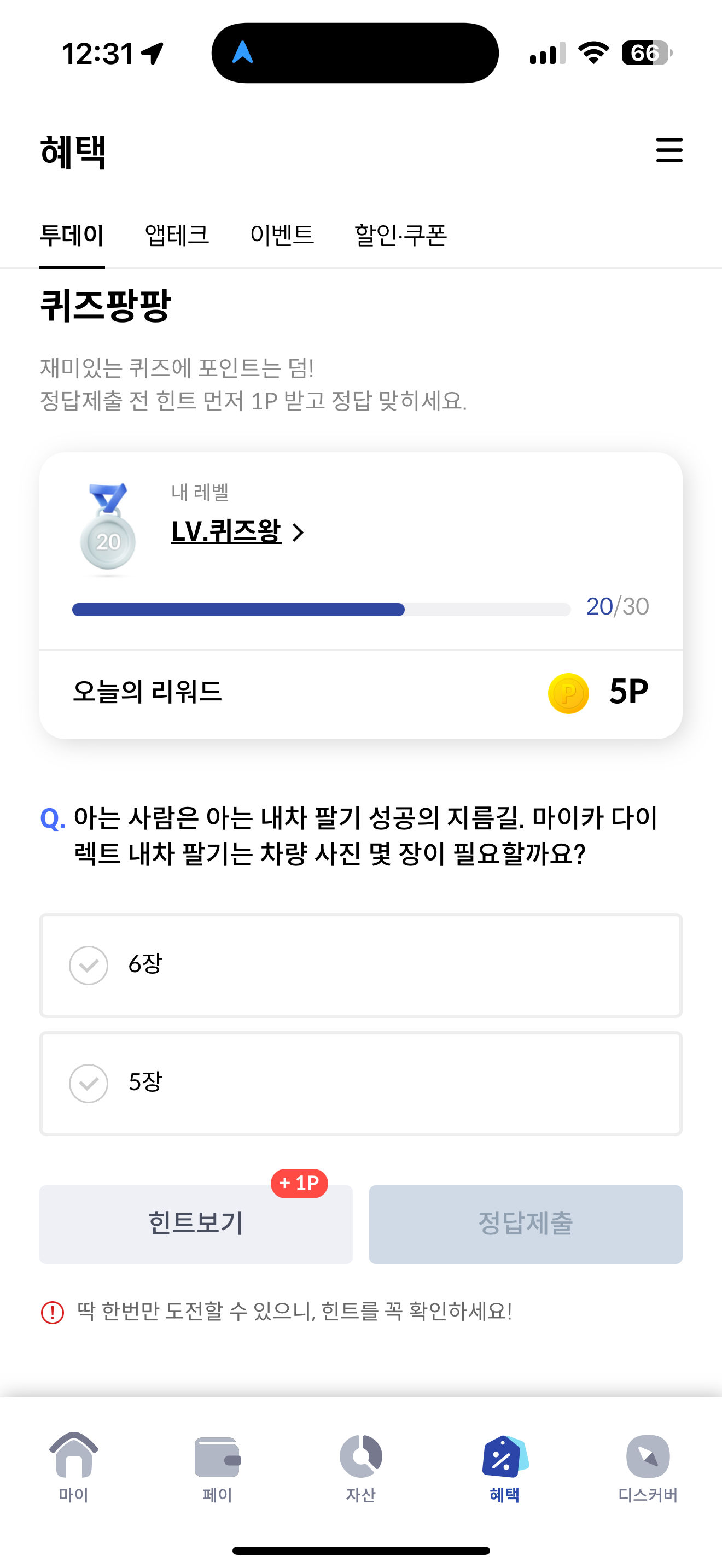 신한카드 퀴즈팡팡 정답은 6장 입니다