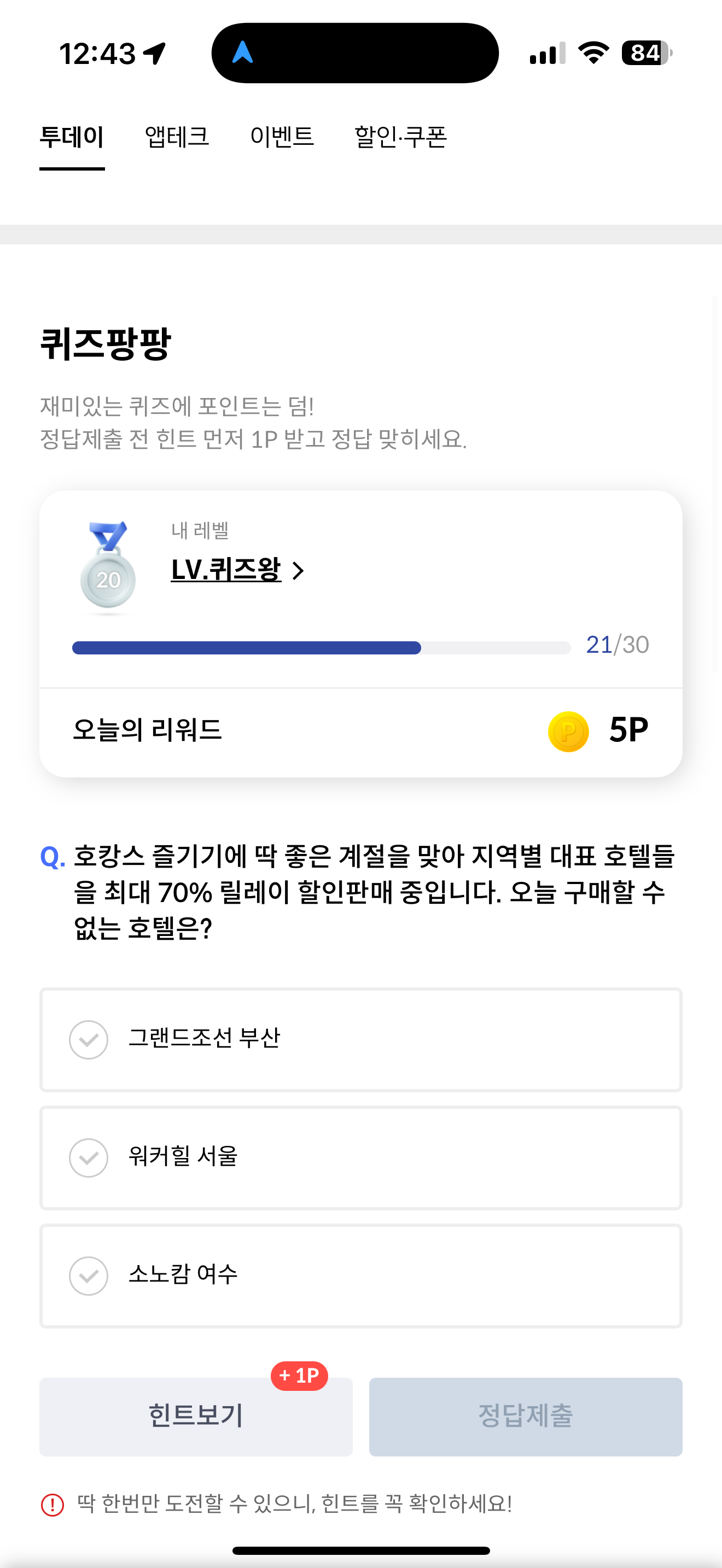 신한카드 퀴즈팡팡 정답은 그랜드조선 부산 입니다