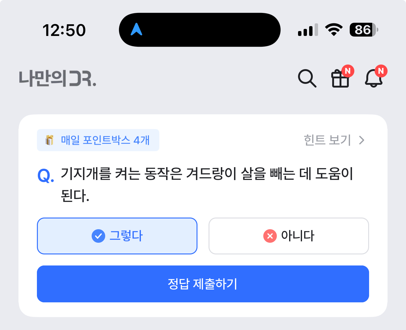 나만의 닥터 퀴즈 5월 22일 정답(기지개를 켜는 동안은 겨드랑이 살을 빼는 데 도움이 된다)