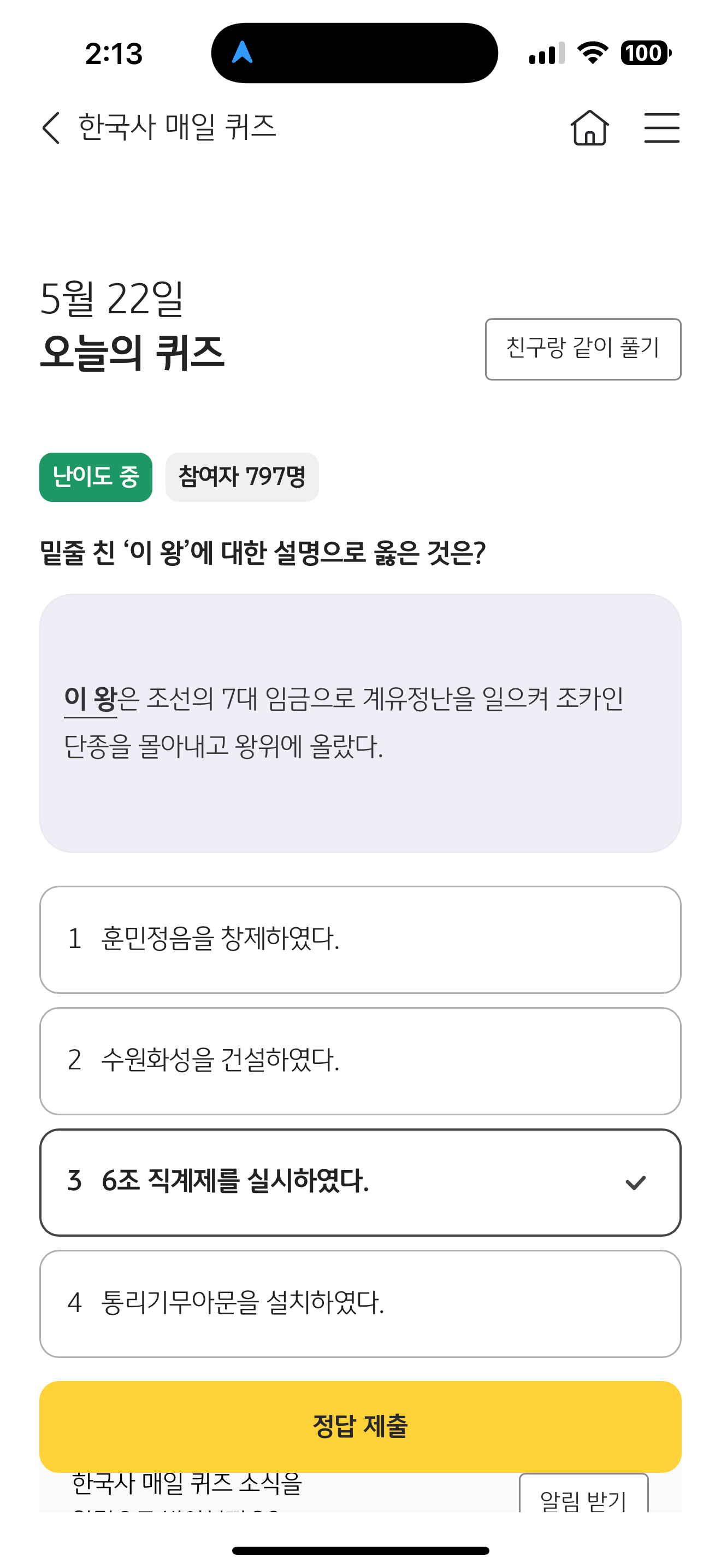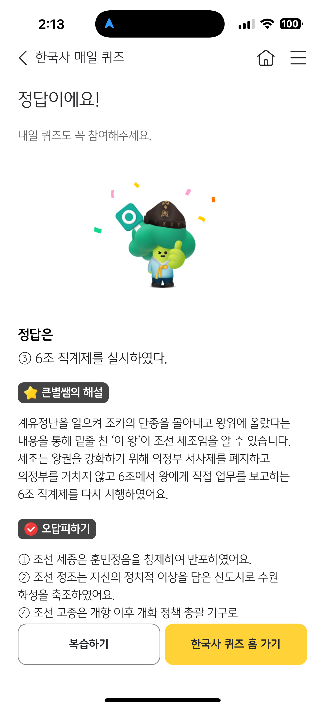 KB스타뱅킹 한국사 매일 퀴즈 정답은 6조 직계제를 실시하였다 입니다