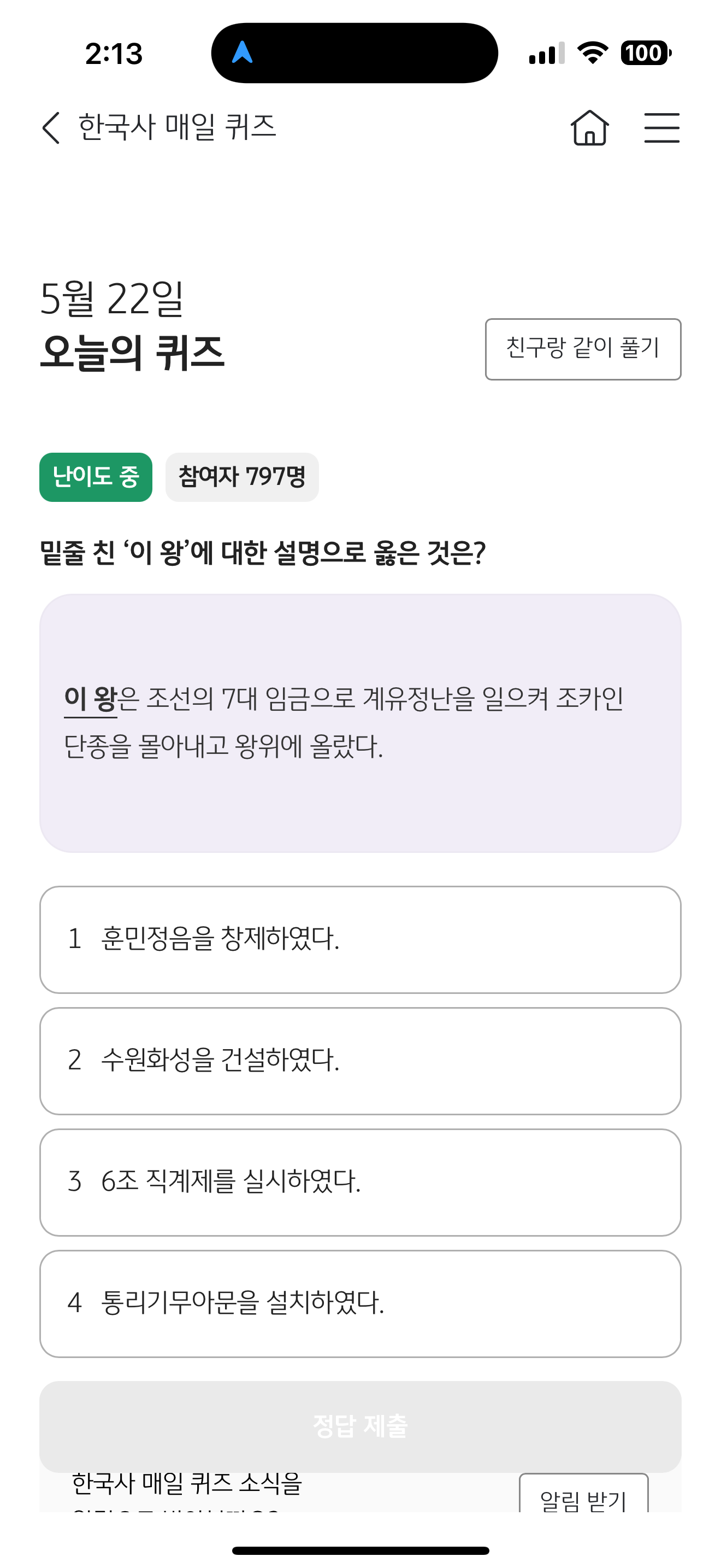 KB스타뱅킹 한국사 매일 퀴즈 5월 22일 문제입니다