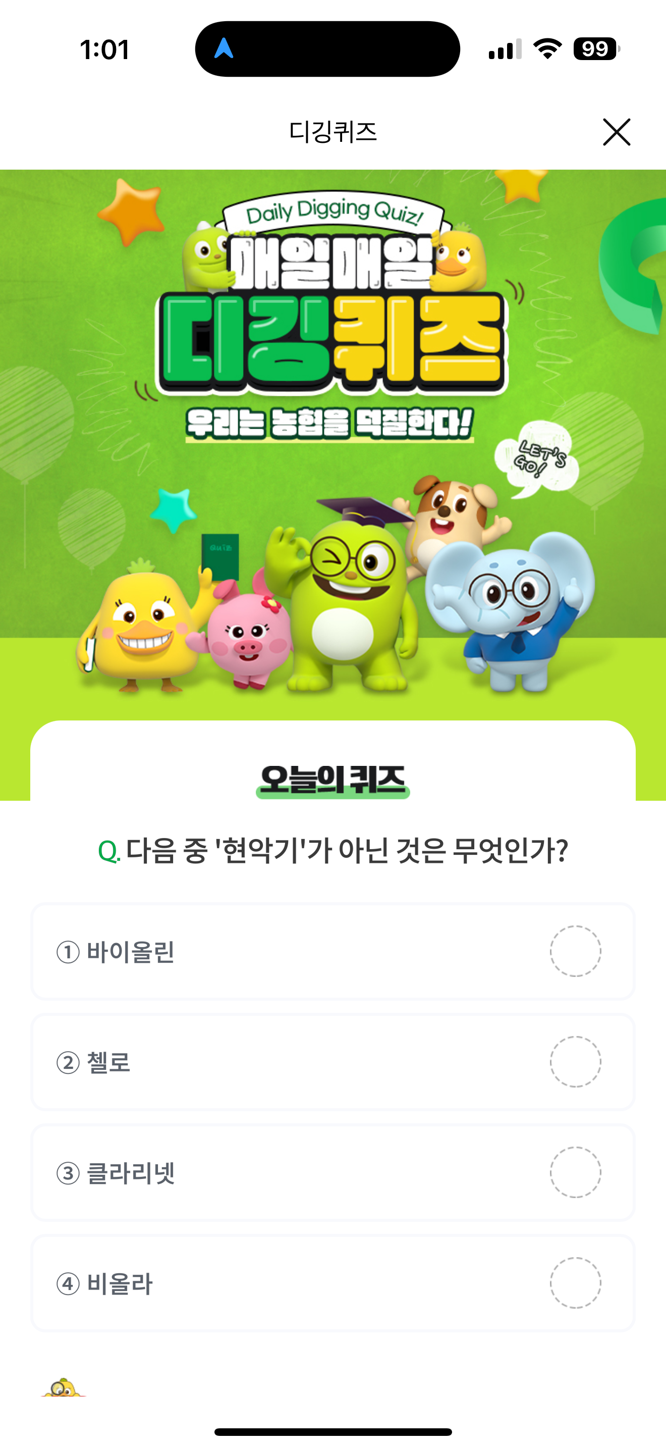 NH올원뱅크 디깅퀴즈 5월 23일 정답(다음 중 '현악기'가 아닌 것은 무엇인가?)