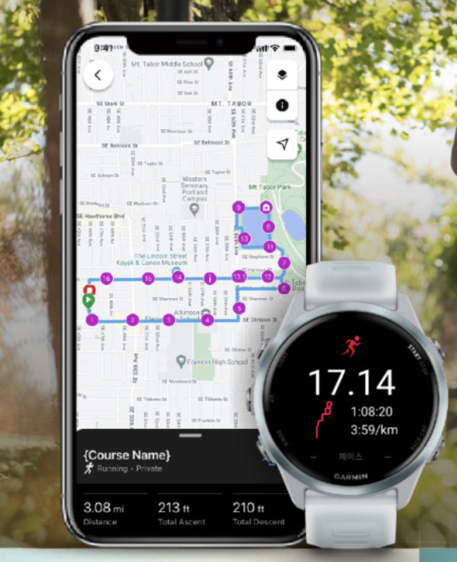 또한, 사전 로드된 경로를 따라가면 예상 도착 시간도 자동 계산되어 트레이닝 효율이 한층 올라갑니다.