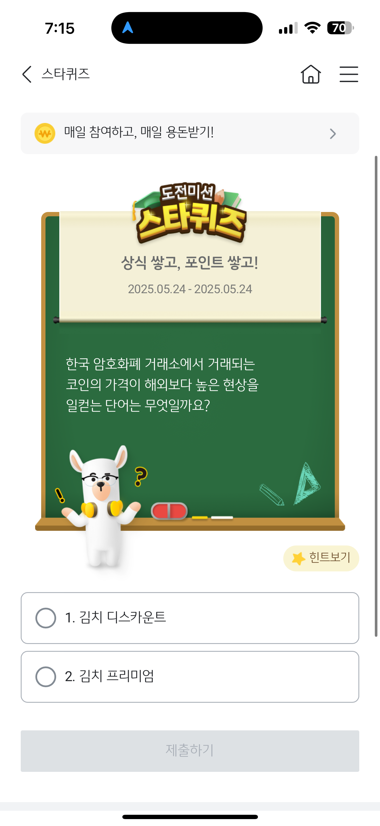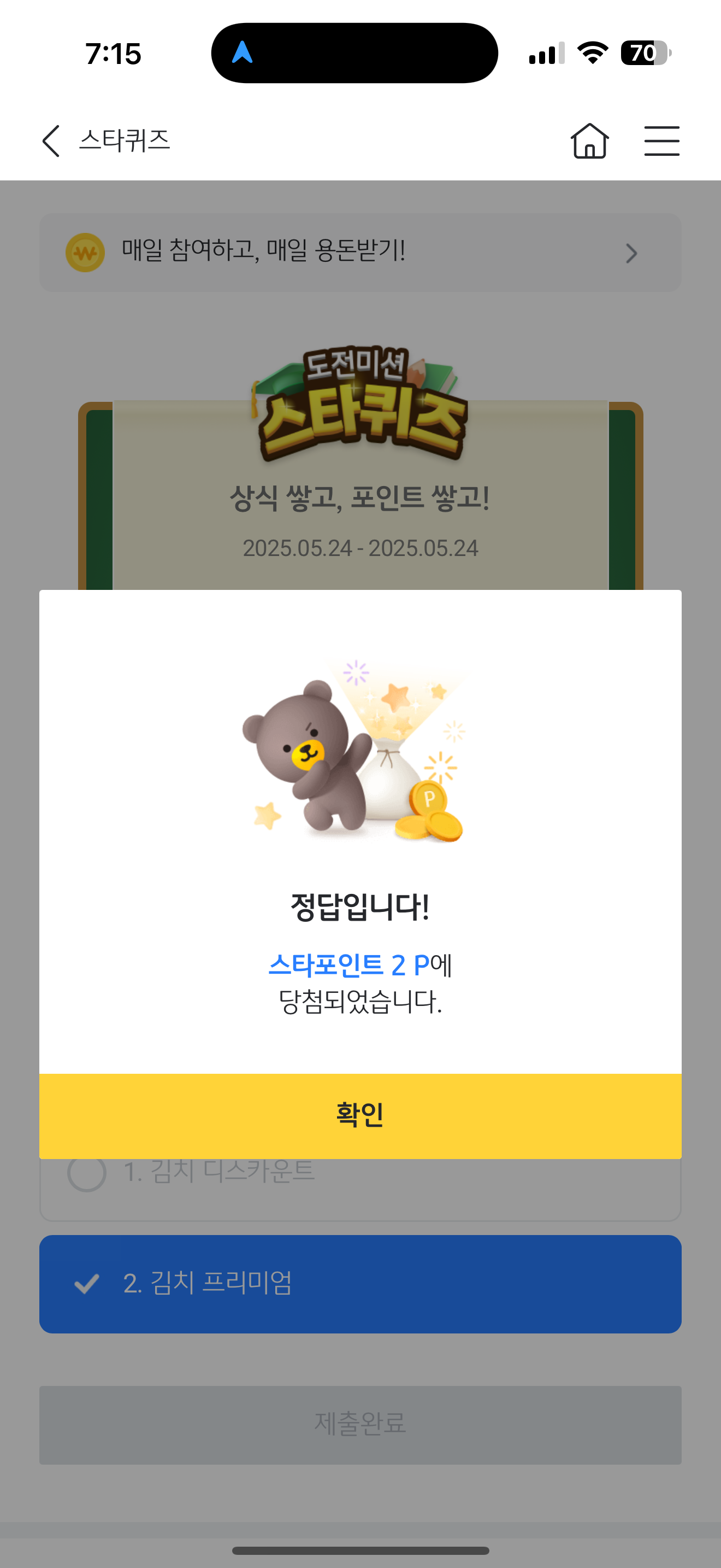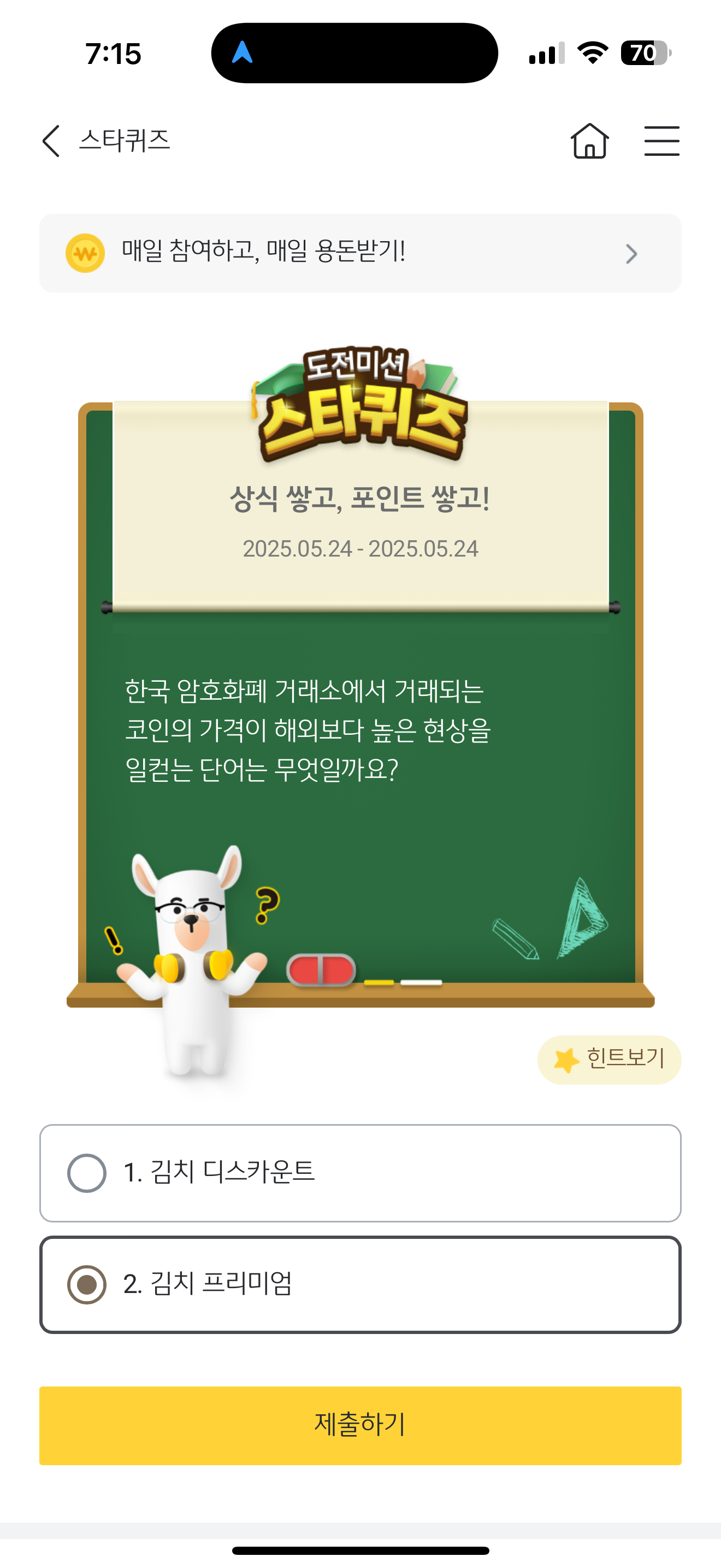 KB스타뱅킹 스타퀴즈 정답은 김치 프리미엄 입니다
