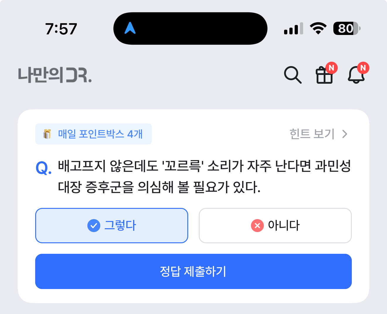 나만의 닥터 퀴즈 정답은 그렇다 입니다