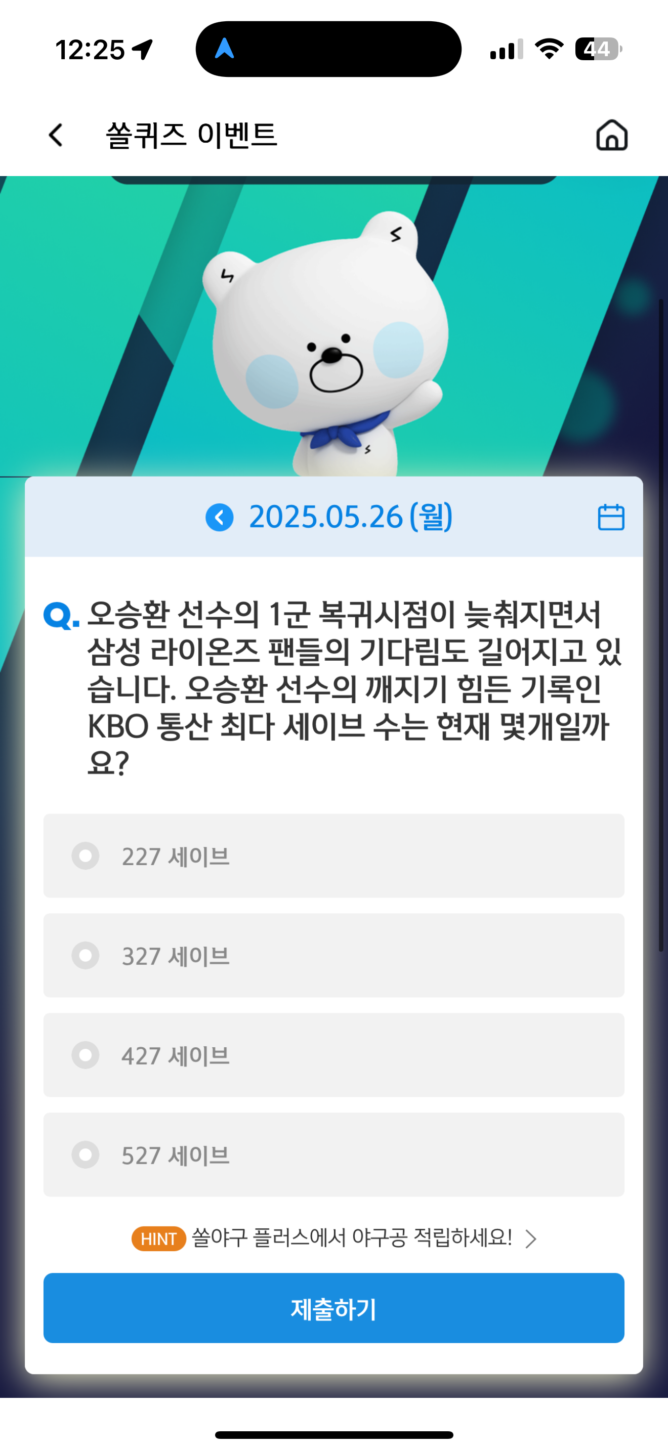 신한 슈퍼SOL 야구/상식 쏠퀴즈 5월 26일 문제입니다