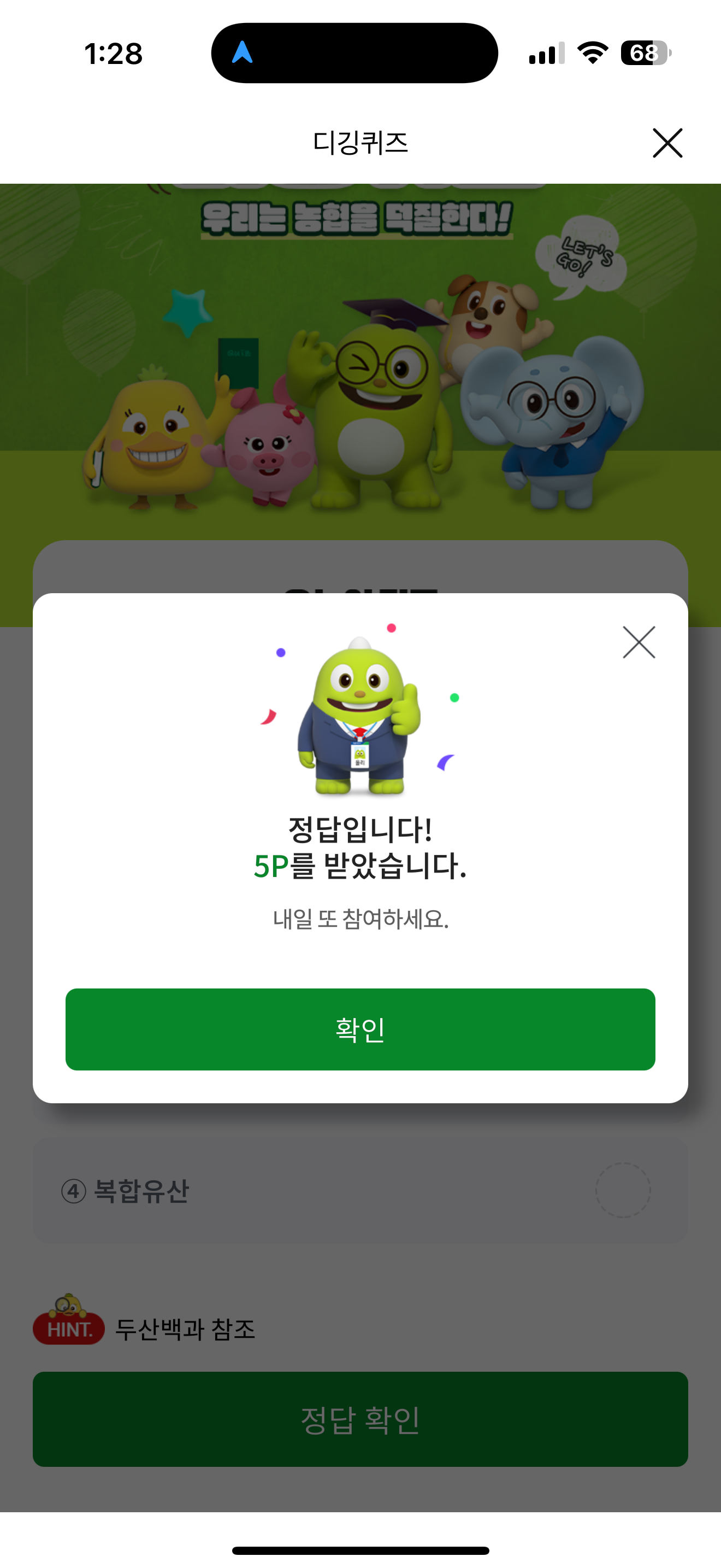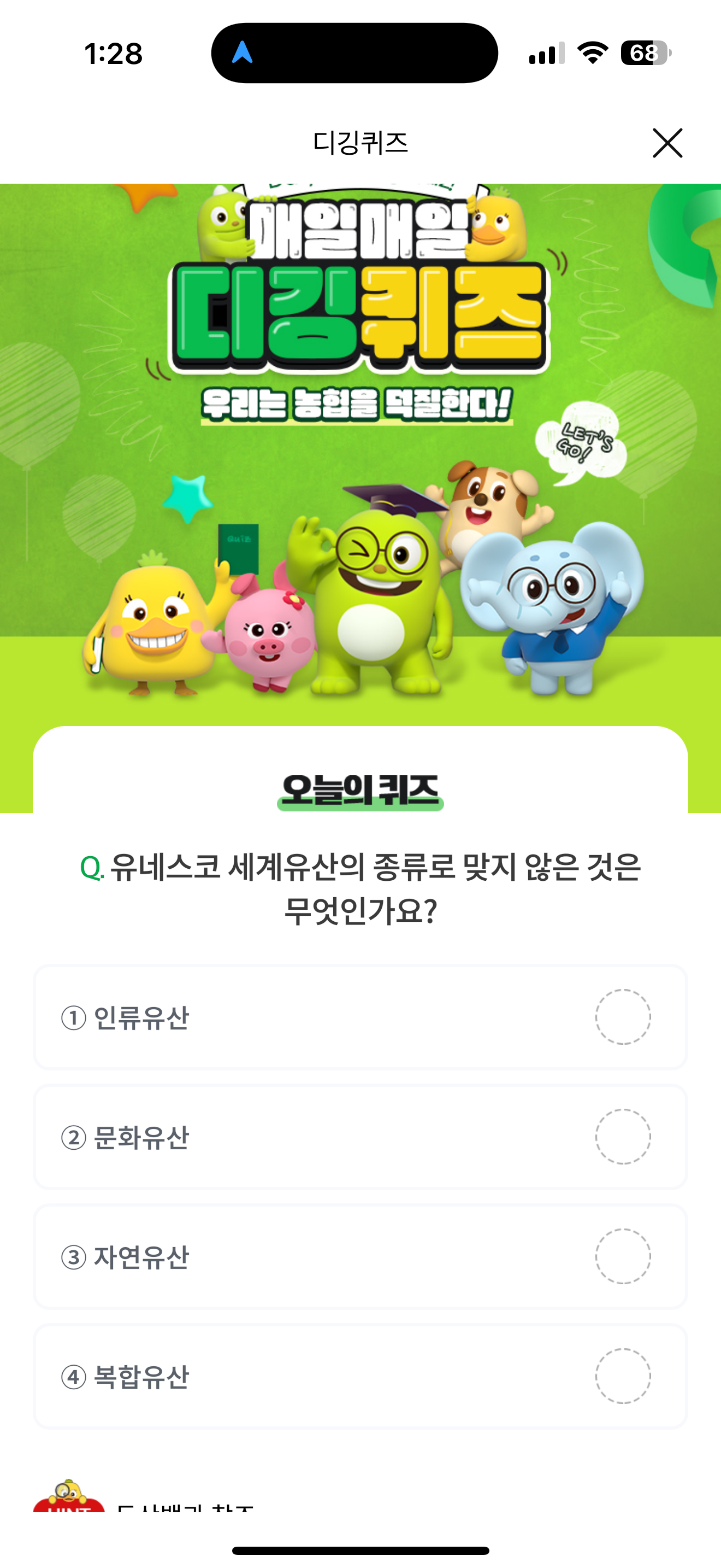 NH올원뱅크 디깅퀴즈 정답은 인류유산 입니다