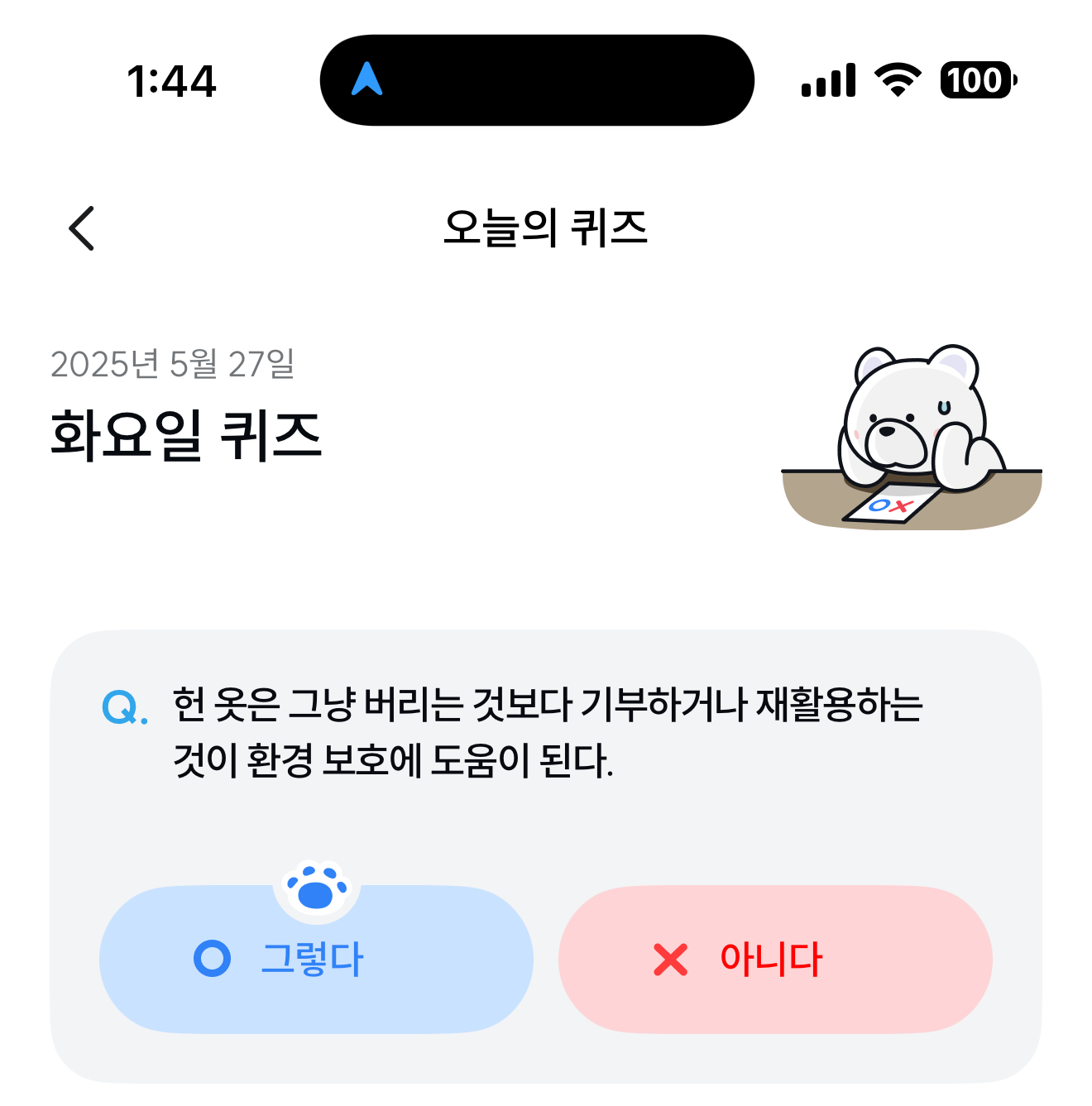 기후행동 기회소득 오늘의 퀴즈 5월 27일 정답(헌 옷은 그냥 버리는 것보다 기부하거나 재활용하는 것이 환경 보호에 도움이 된다)