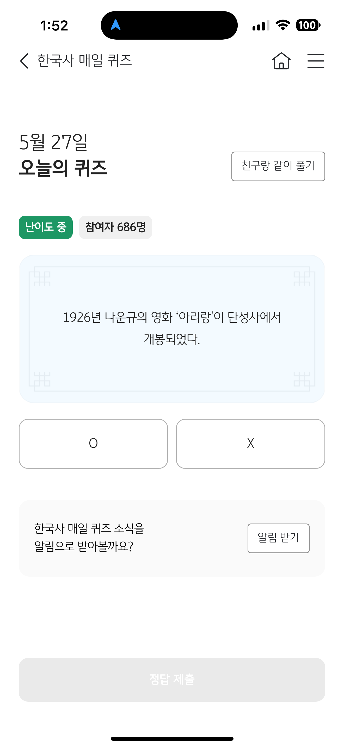 KB스타뱅킹 한국사 매일 퀴즈 정답은 O 입니다