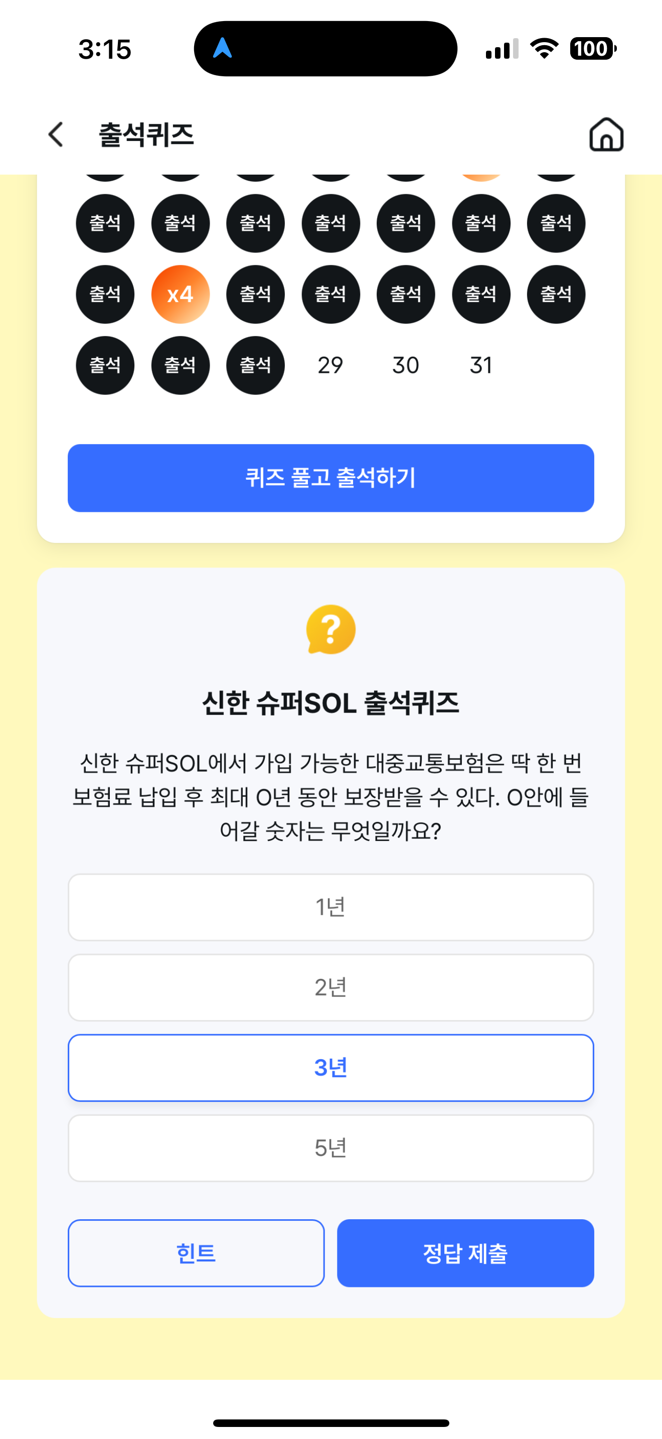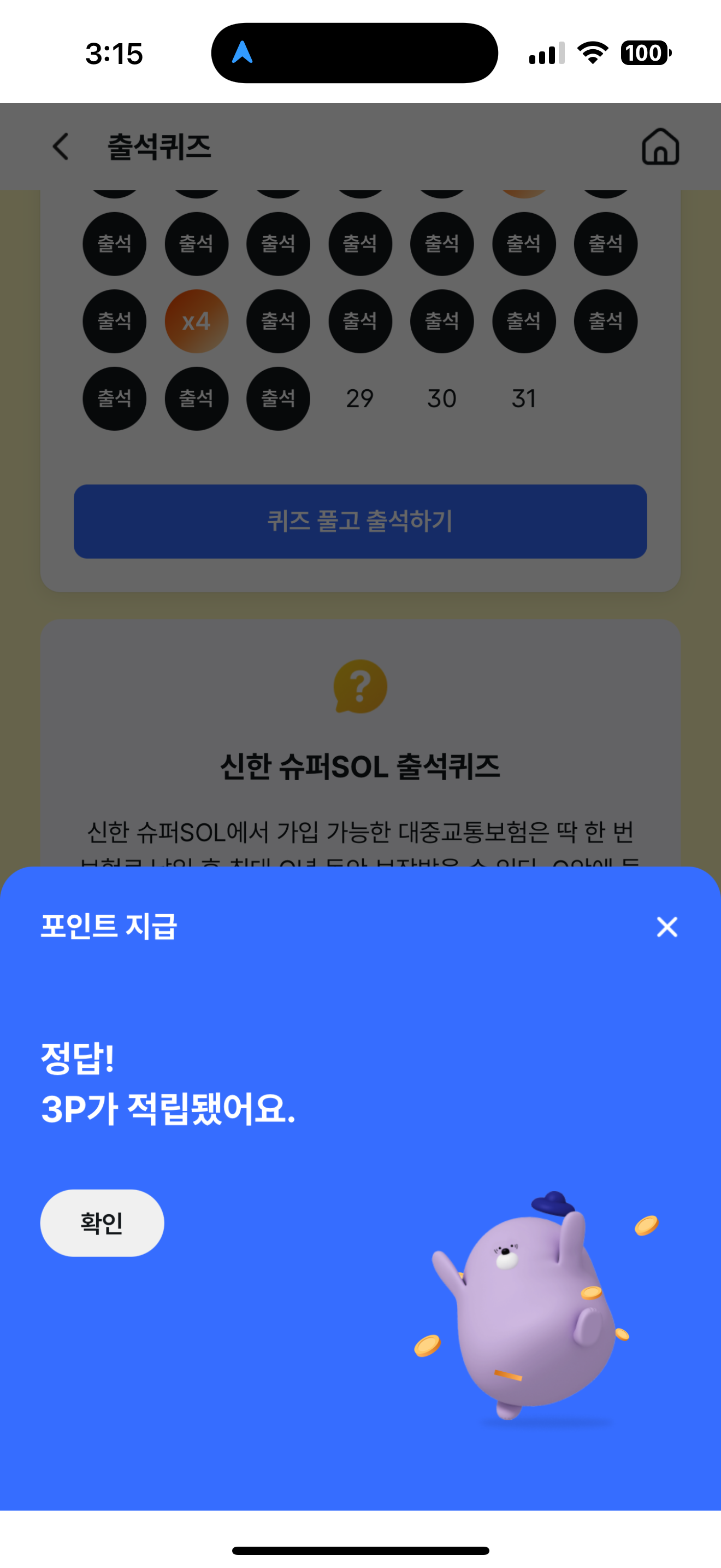 신한 슈퍼SOL 출석퀴즈 정답은 3년 입니다