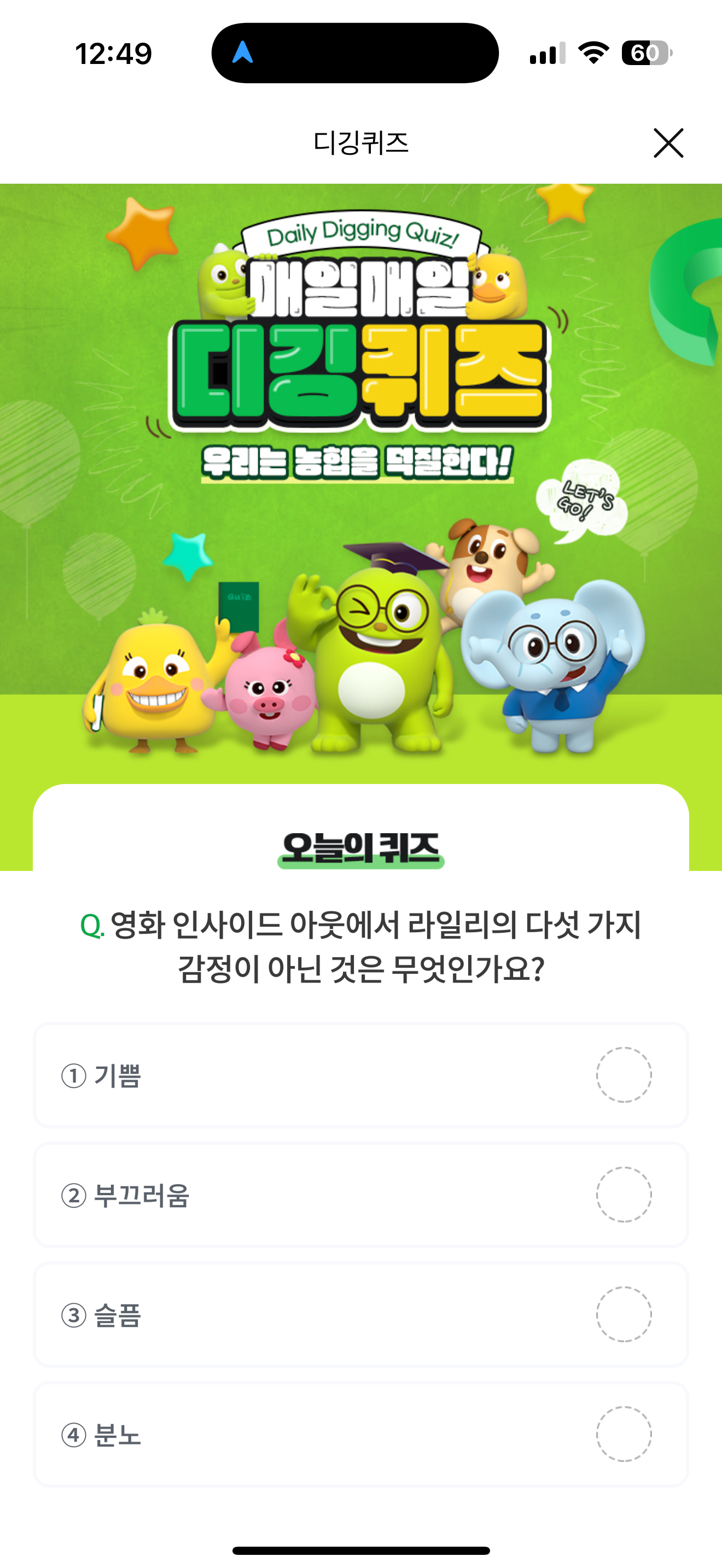 NH올원뱅크 디깅퀴즈 정답은 부끄러움 입니다
