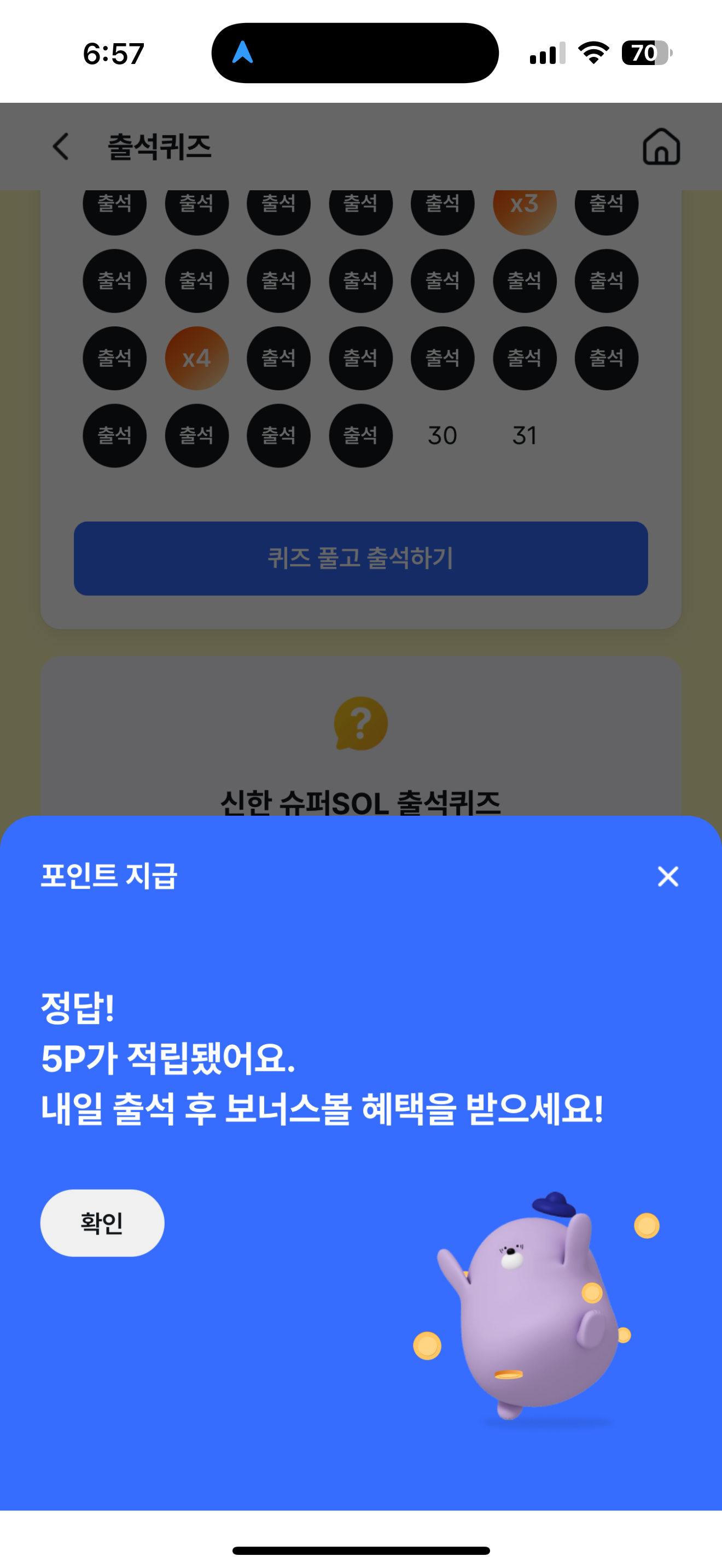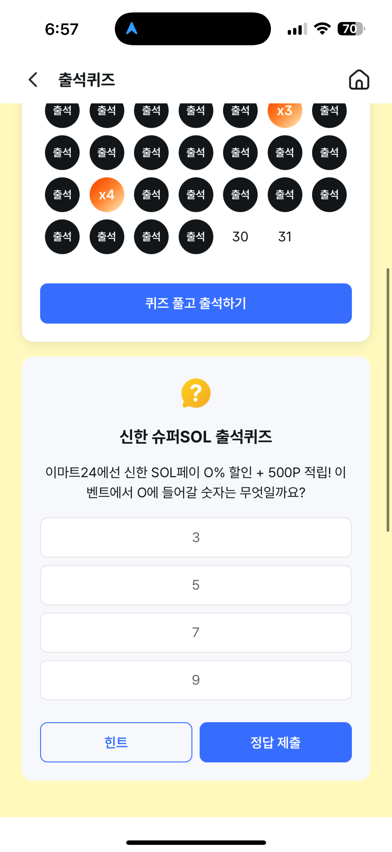 신한 슈퍼SOL 출석퀴즈 정답은 7 입니다