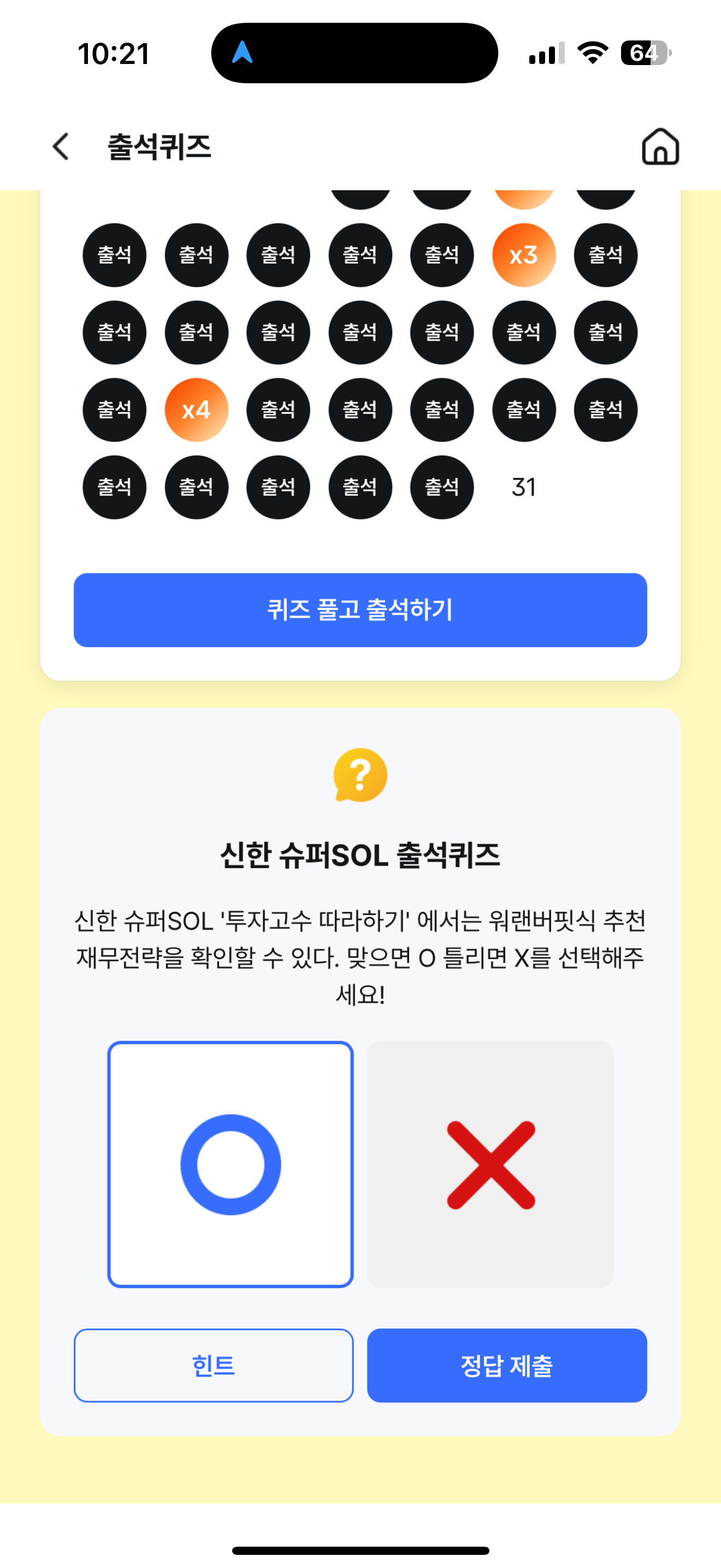 신한 슈퍼SOL 출석퀴즈 정답은 O 입니다