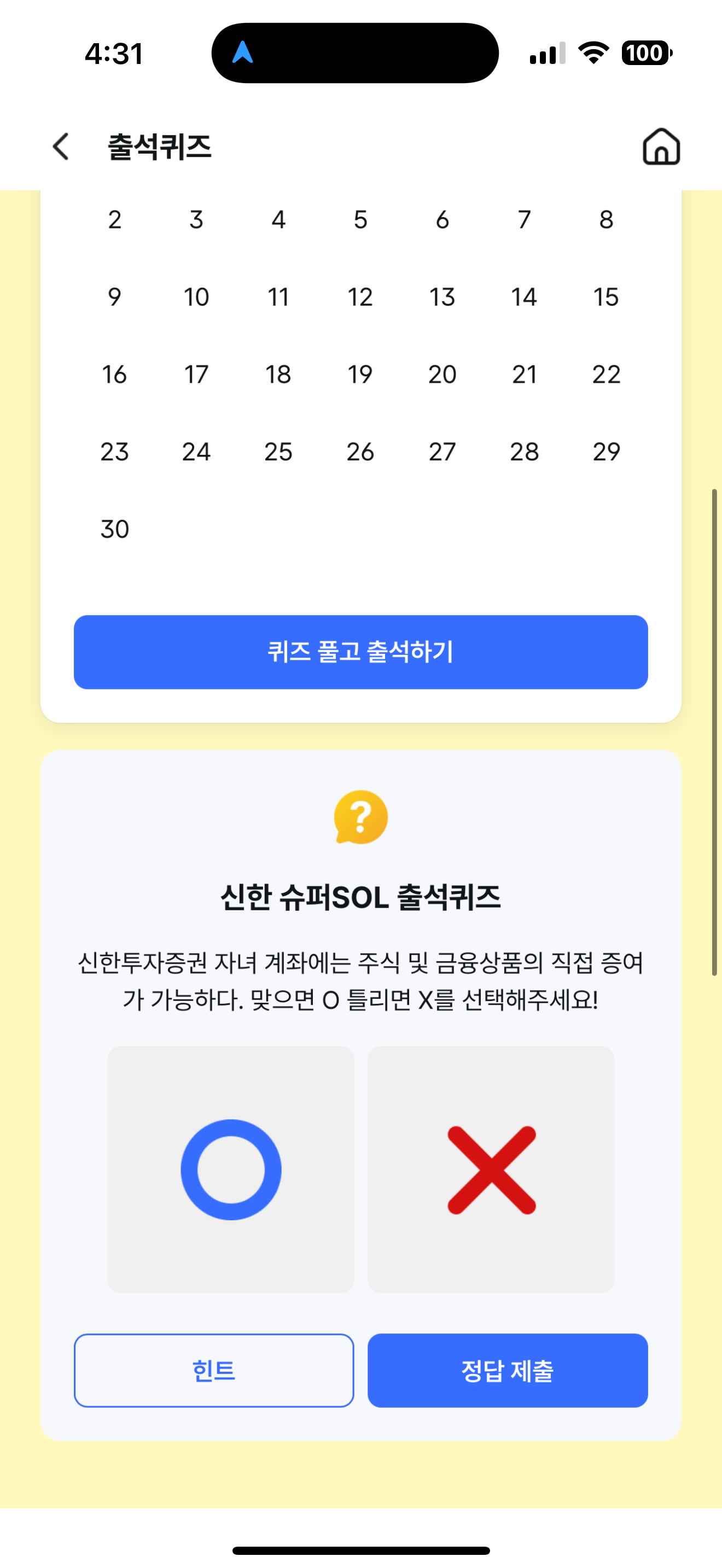 신한 슈퍼SOL 출석퀴즈 정답은 O 입니다
