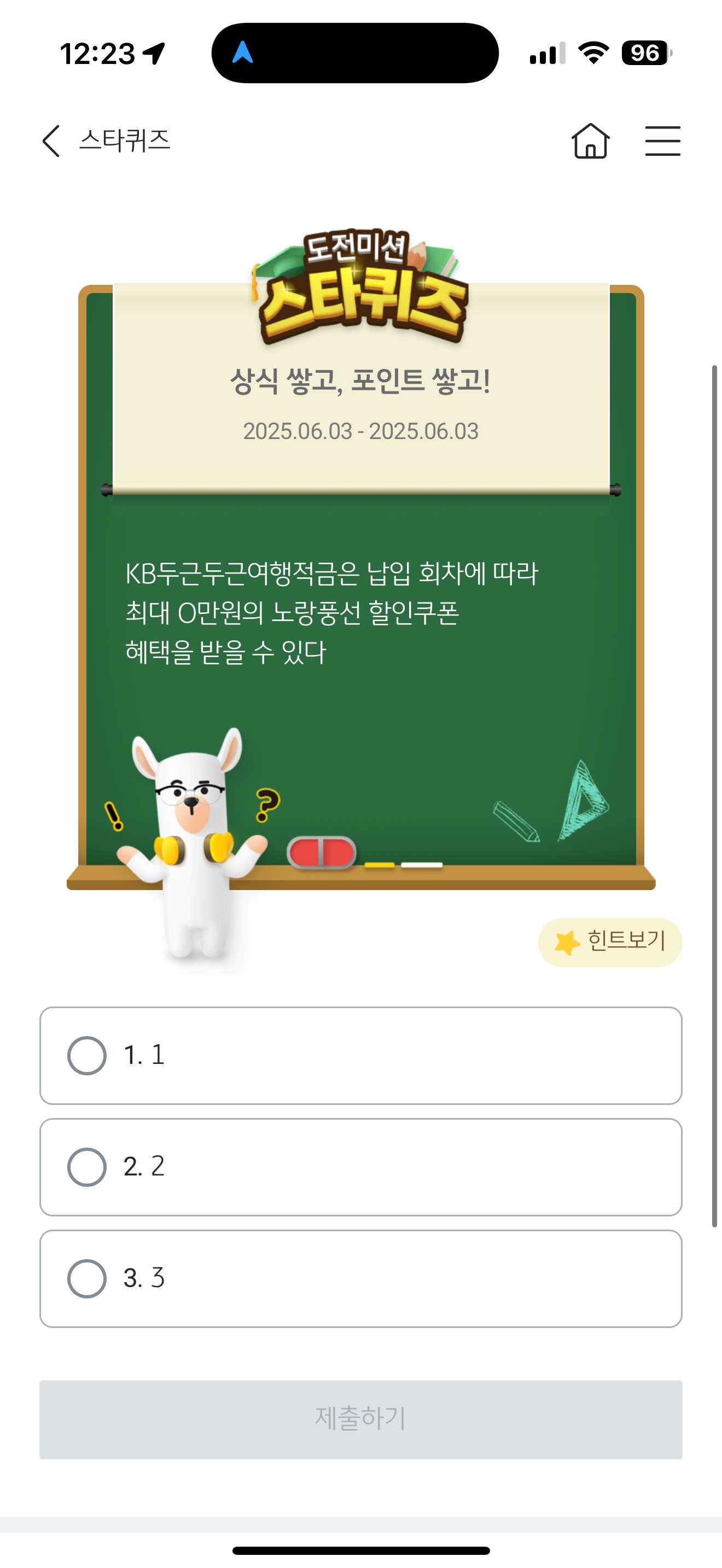 KB스타뱅킹 스타퀴즈 정답은 3 입니다