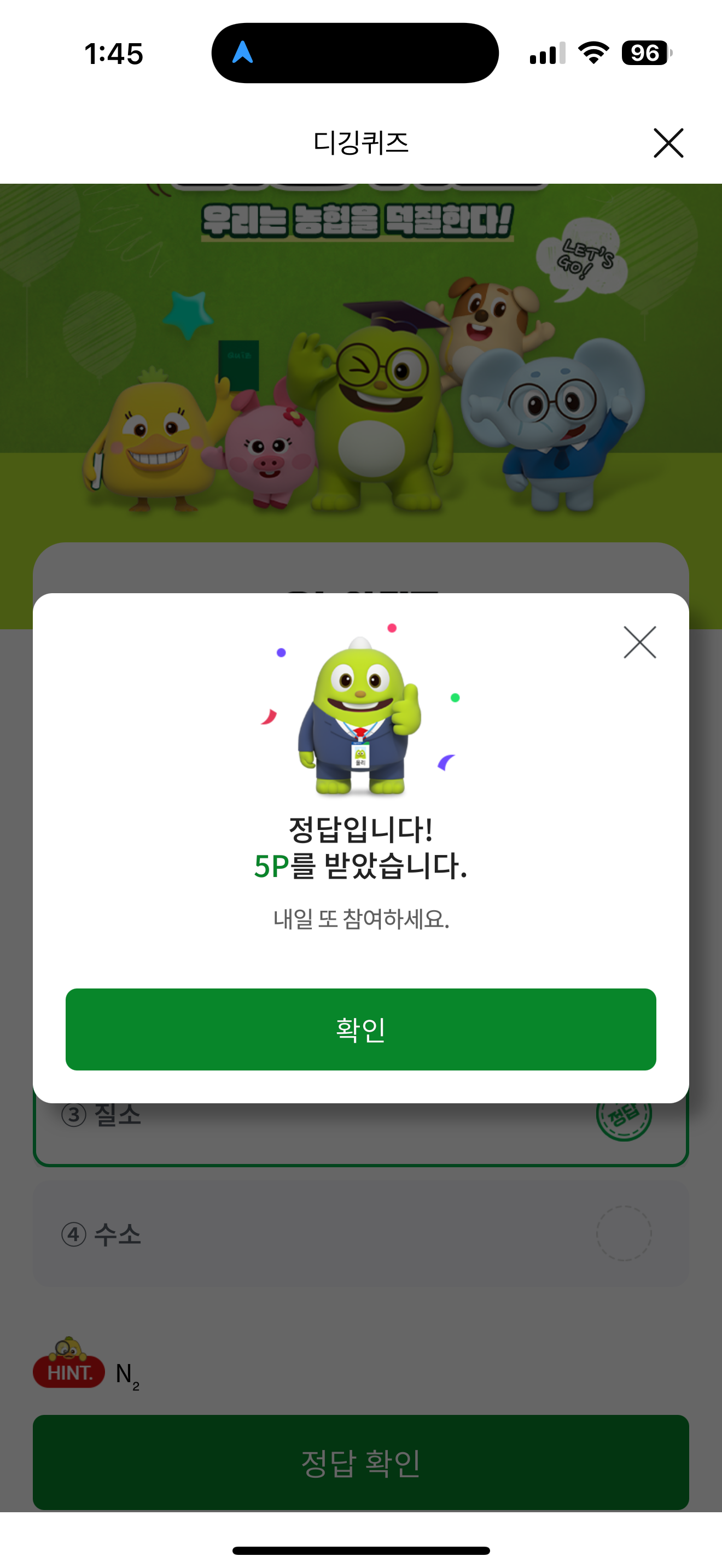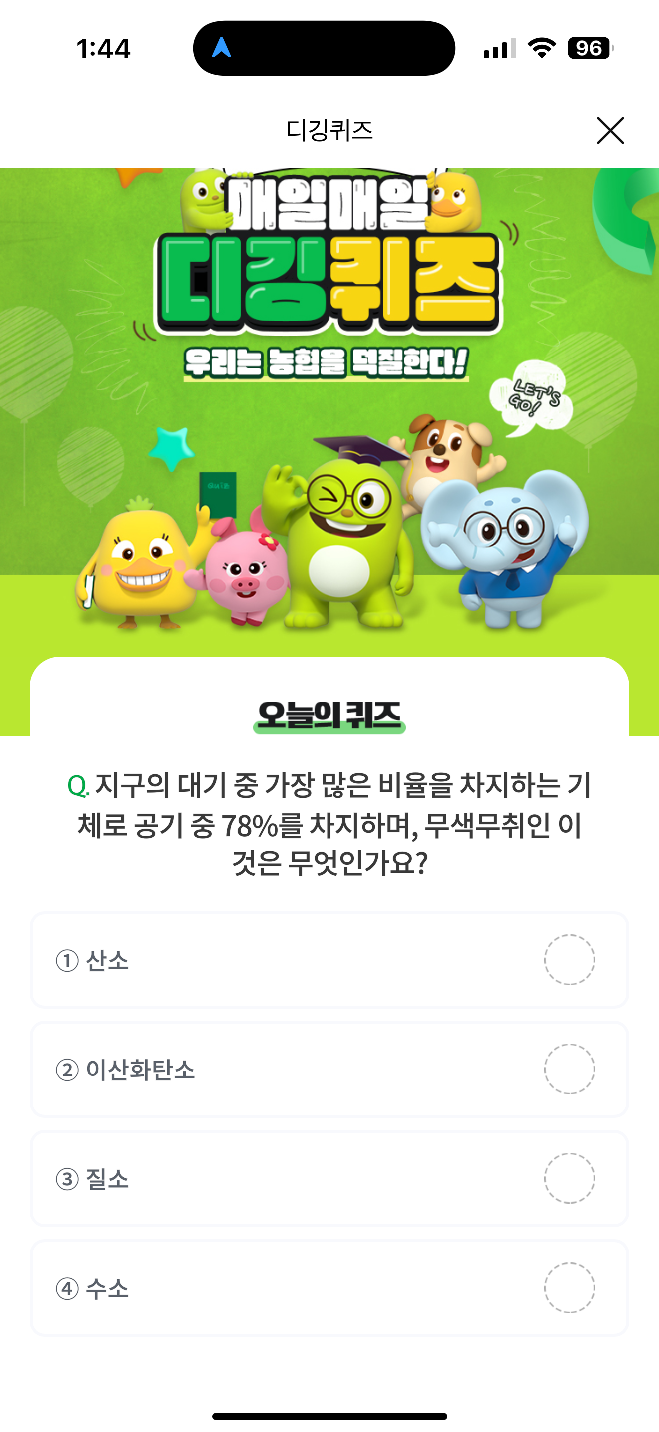 NH올원뱅크 디깅퀴즈 정답은 질소 입니다