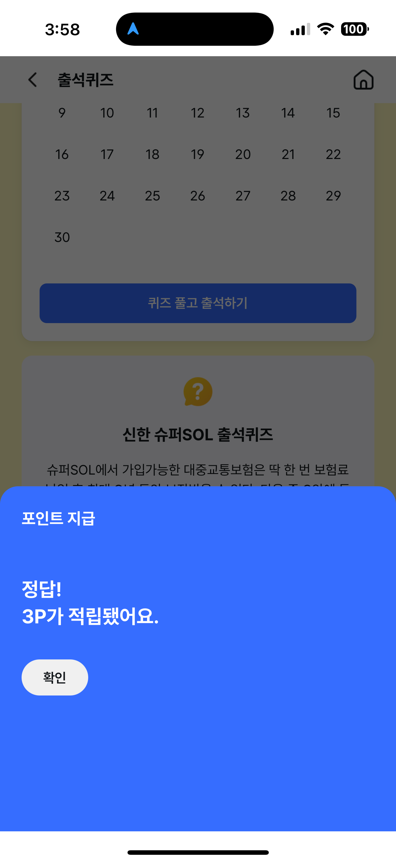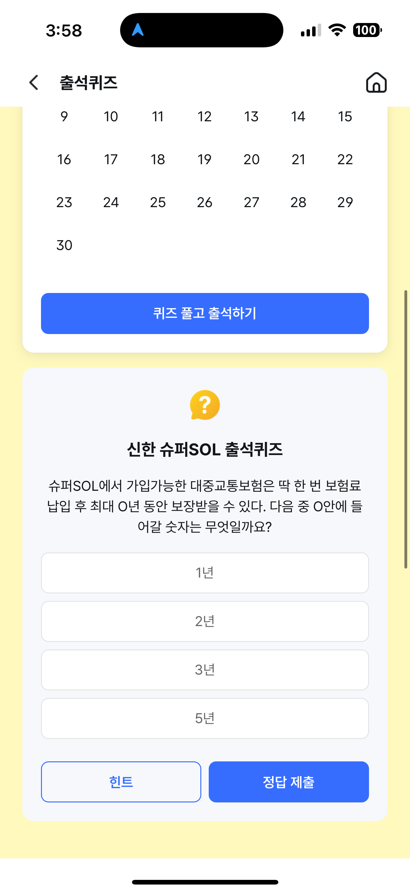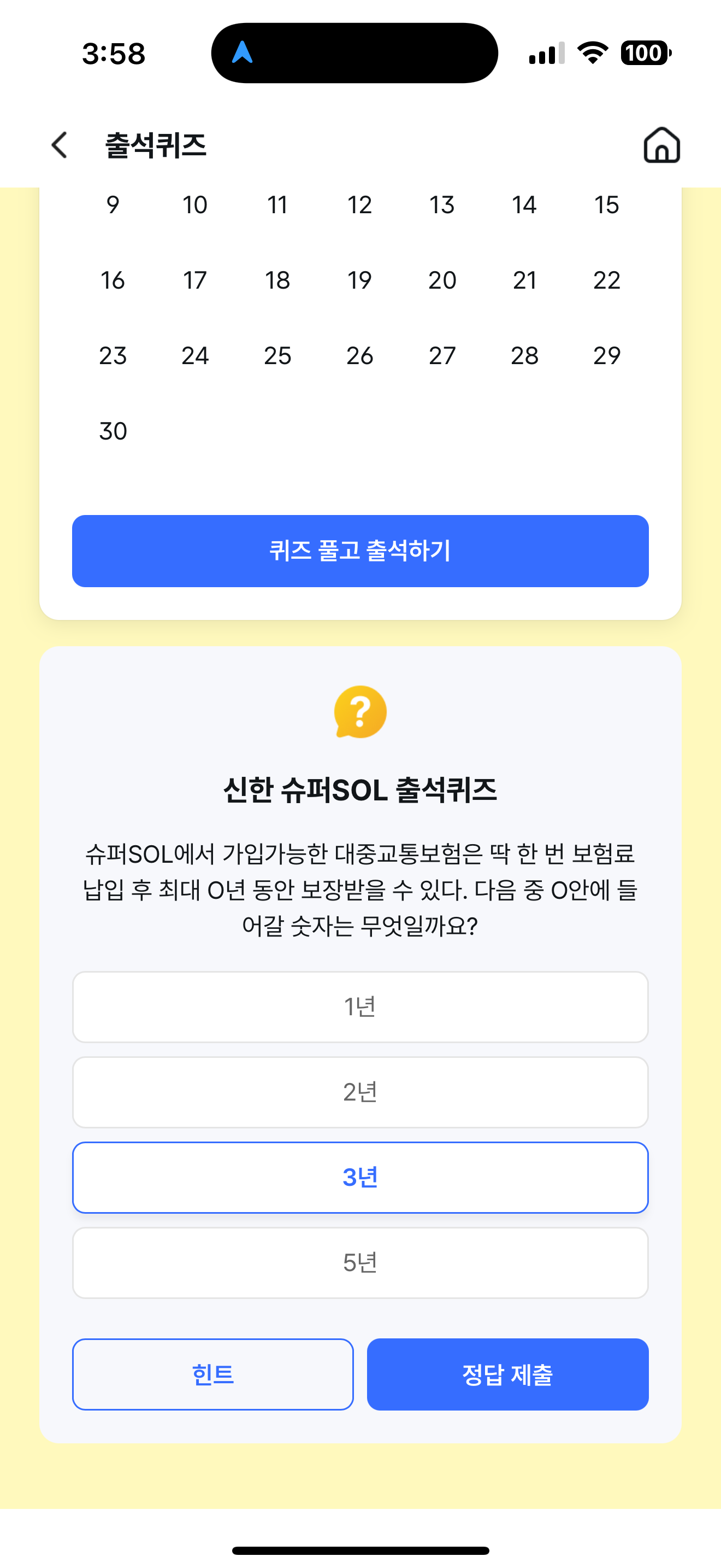 신한 슈퍼SOL 출석퀴즈 정답은 3년 입니다